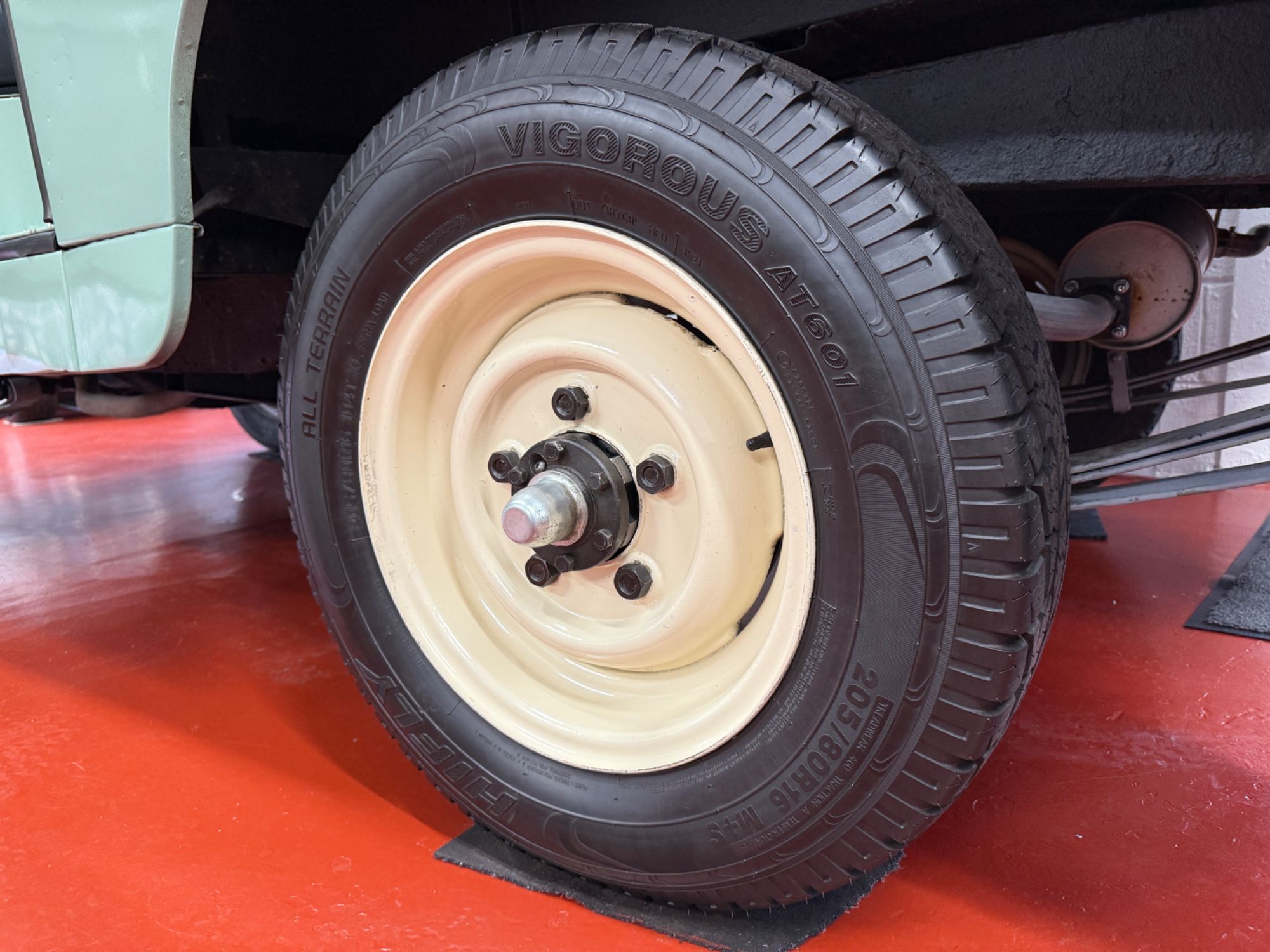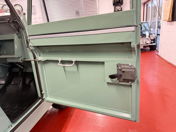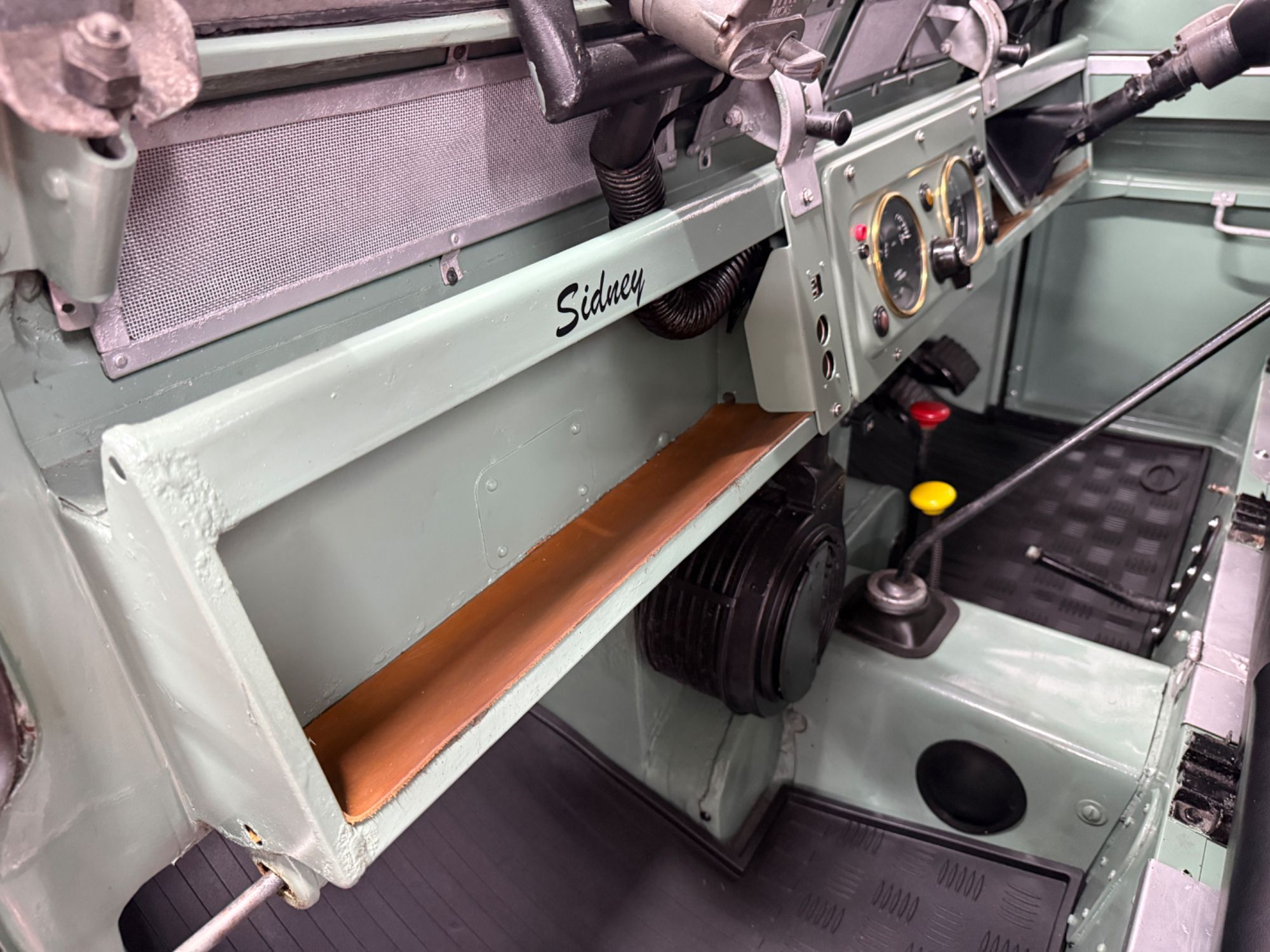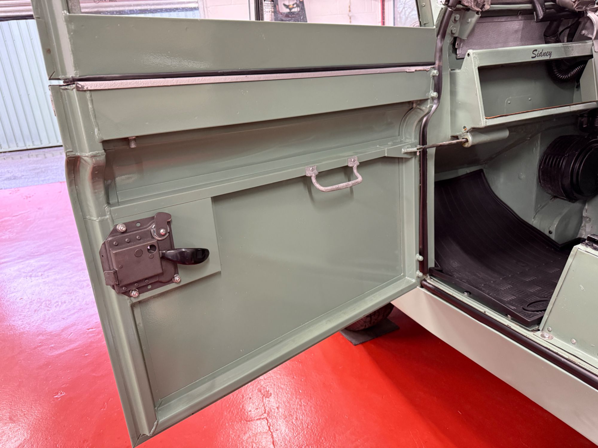 | Hinged front screen, Canvas hood with removable frame, wing mounted mirrors, bonnet mounted spare wheel, internal adjustable bulkhead ventilation flaps, sliding windows, water temp/fuel gauge, twin wipers. | |