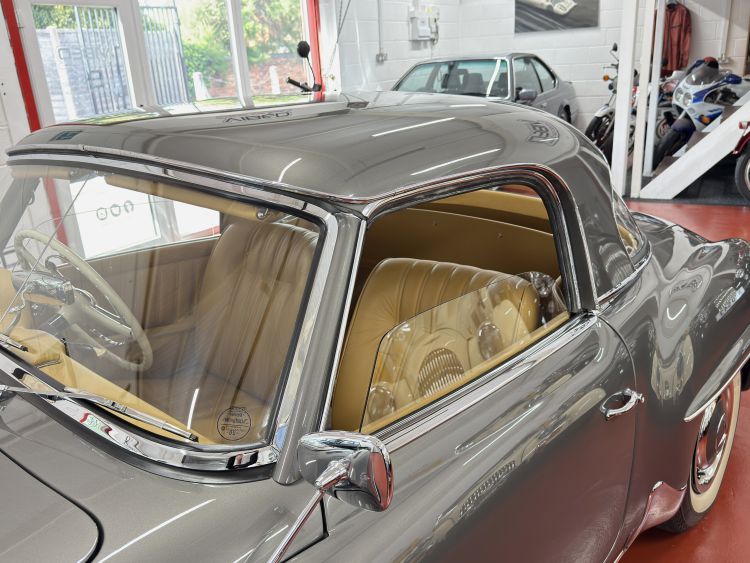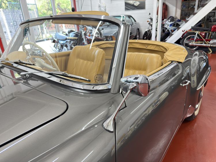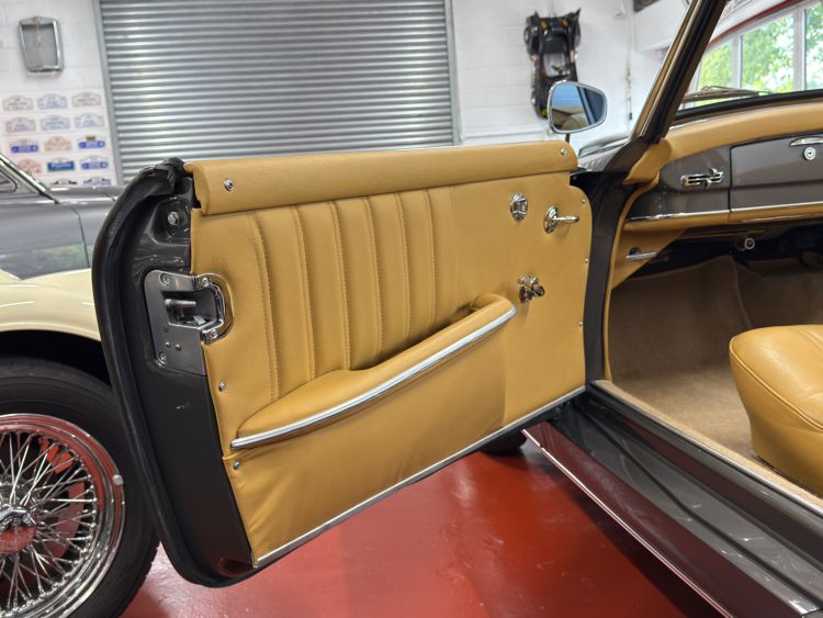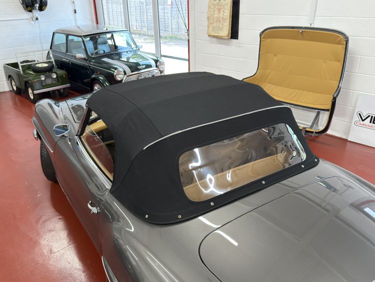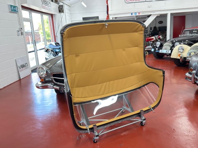 The fully restored original hard top presents in perfect order with a taught tailor made unmarked Tan leather headlining, new rubber seals, chrome trim and crystal clear rear window. New correct specification black mohair hood and fully restored framework, the hood opens and closes with ease and fits perfectly... Simply wonderful.