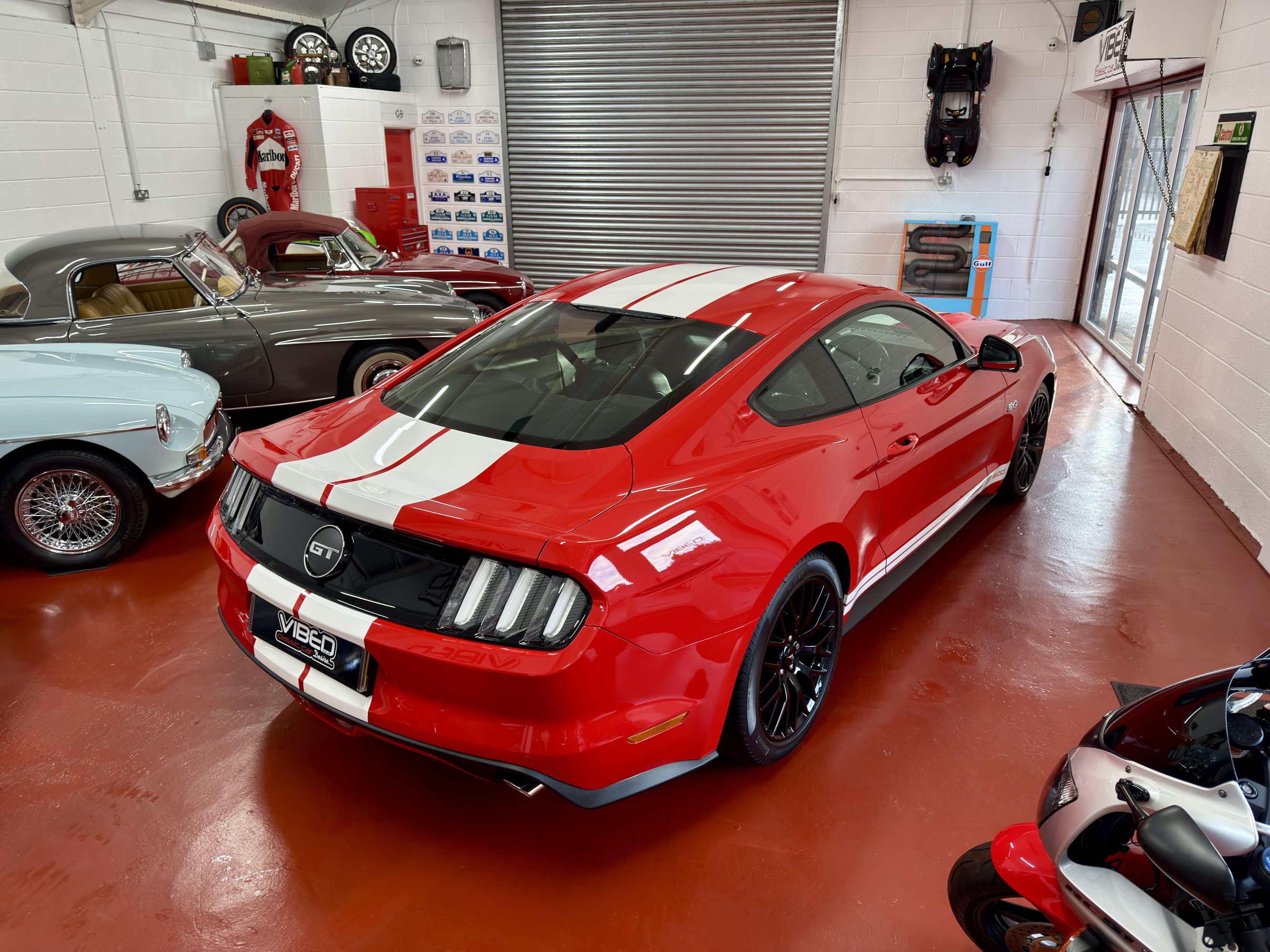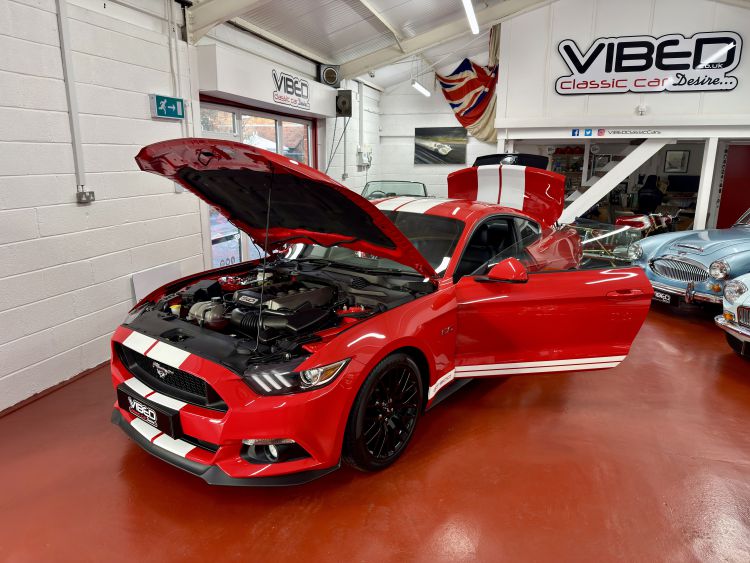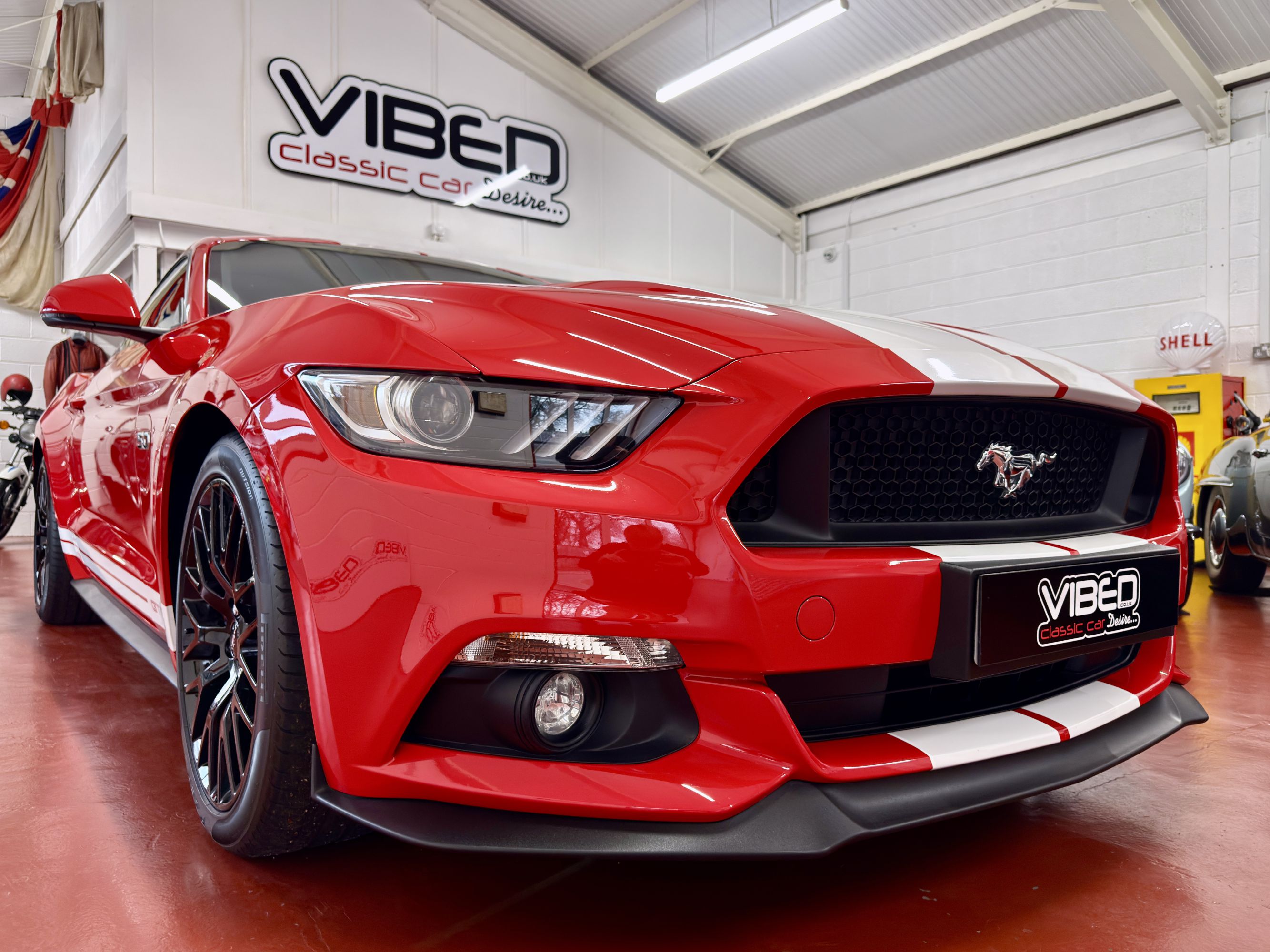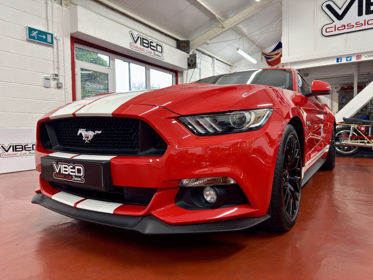 Here we have an opportunity to own a very desirable Ford Mustang 5.0 V8 GT Fastback in the best colour combination of Race Red with White Racing Decals...
