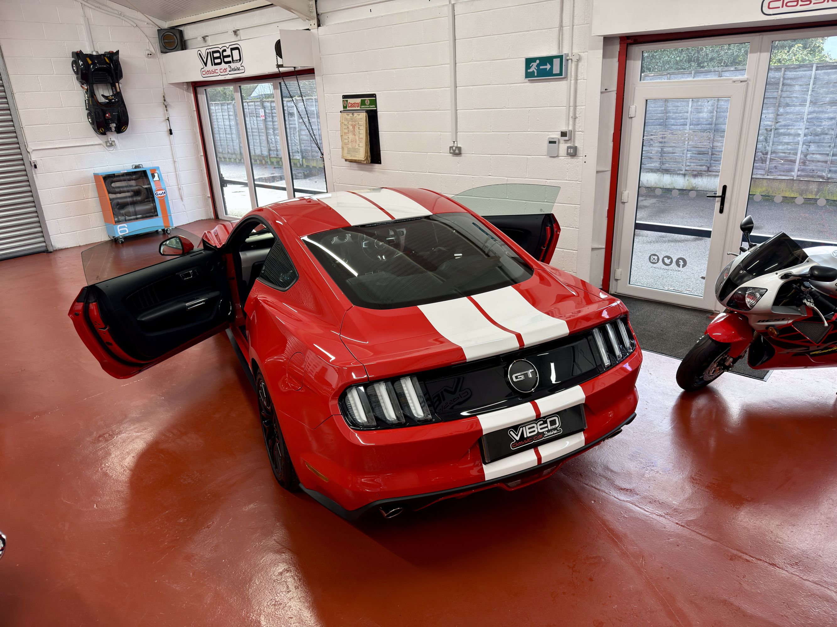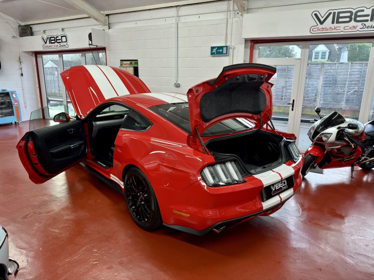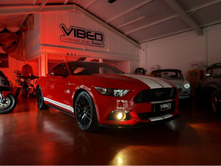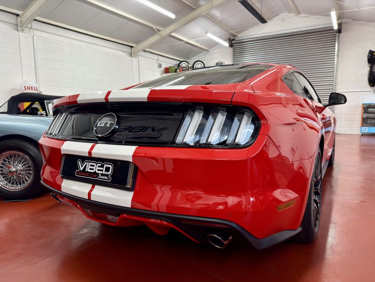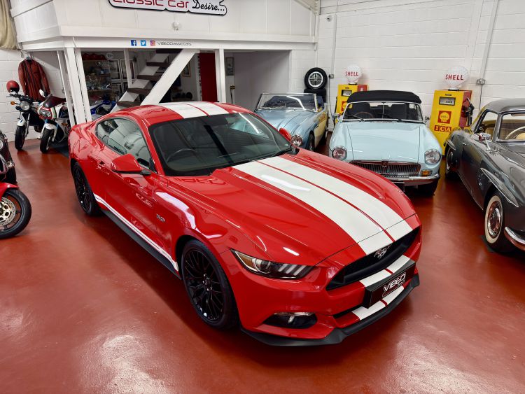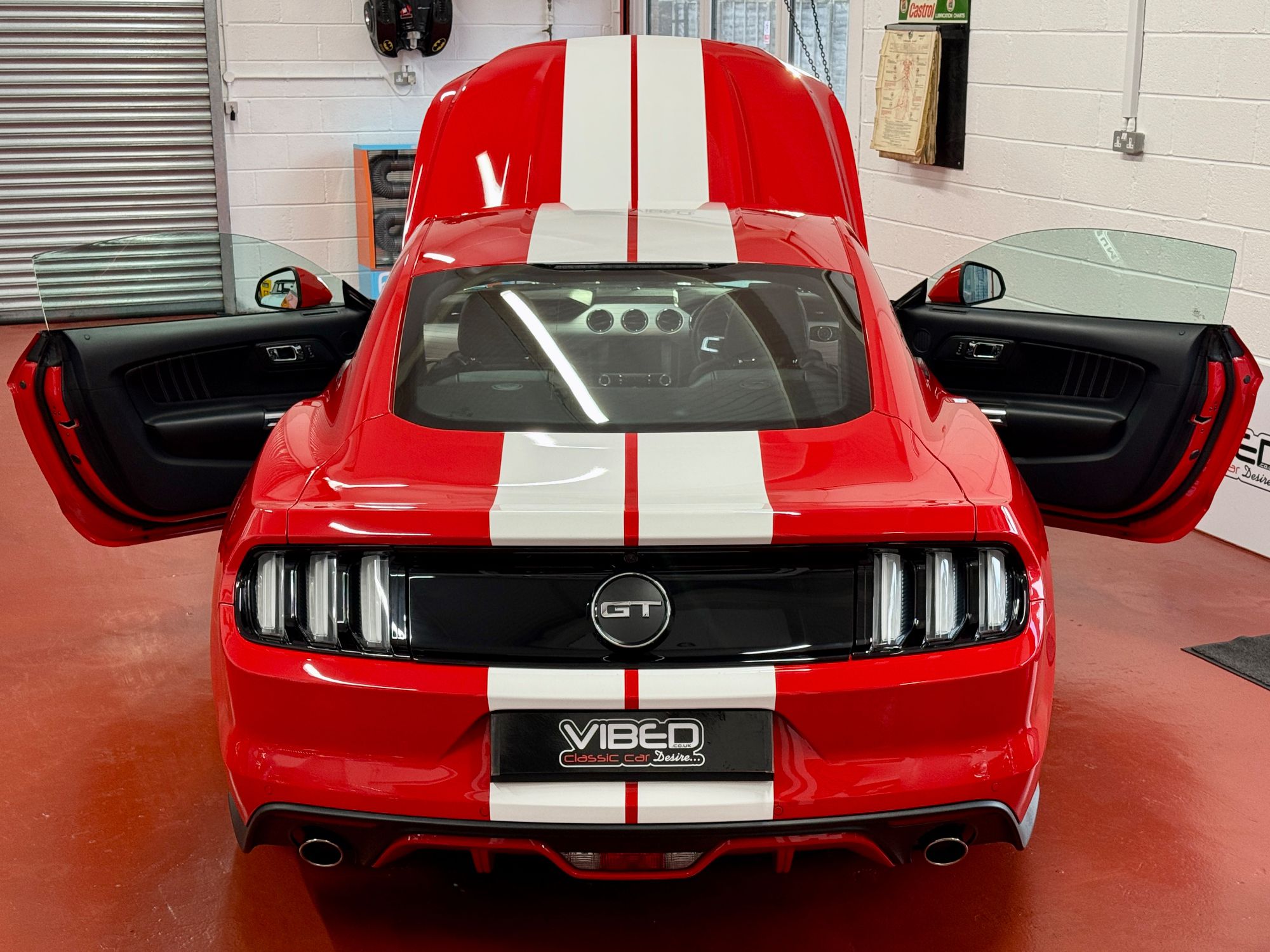 Here we have an opportunity to own a very desirable Ford Mustang 5.0 V8 GT Fastback in the best colour combination of Race Red with White Racing Decals...