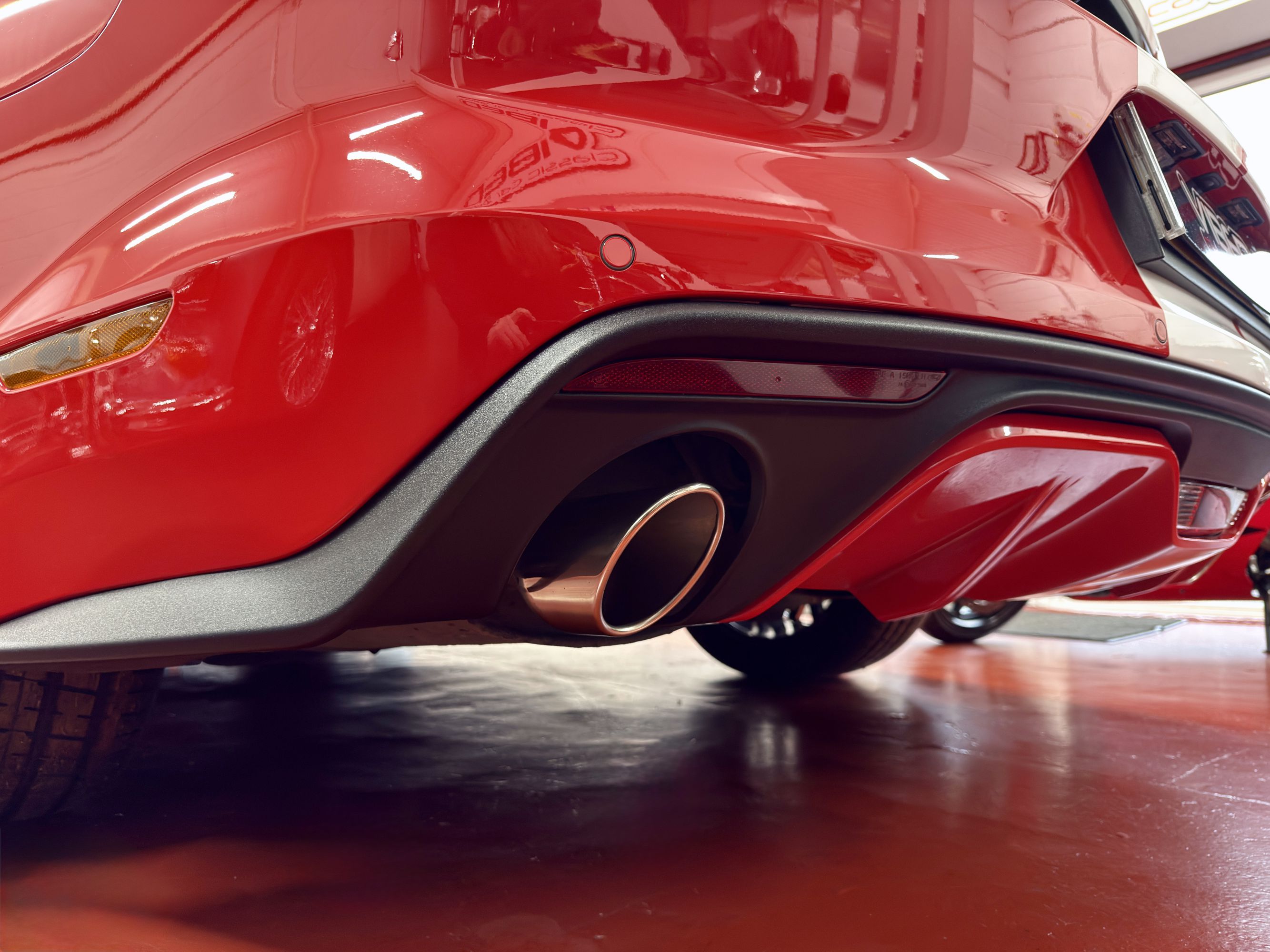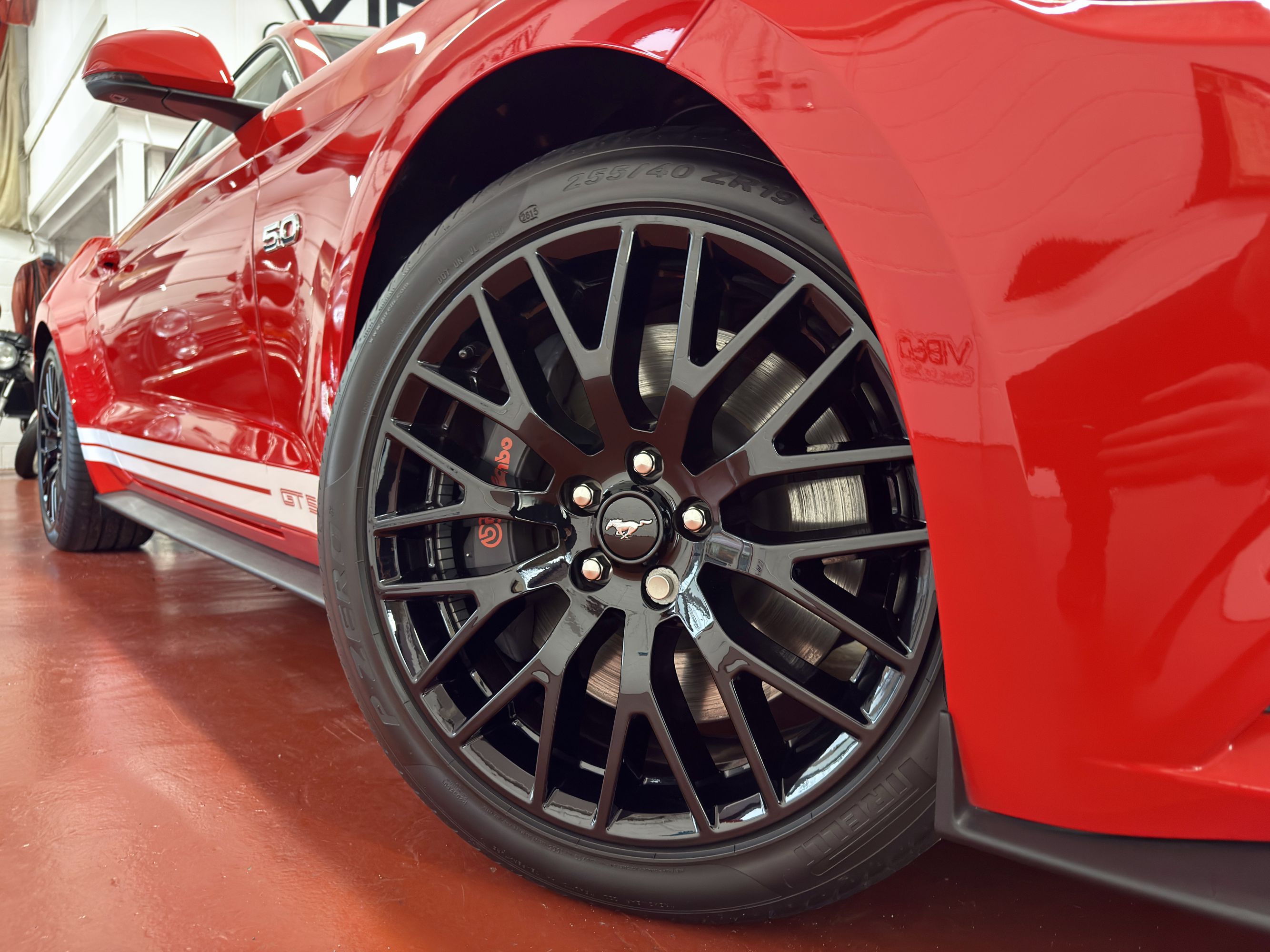 BRAKES - High-performance 380mm ventilated front discs paired with 6-piston fixed aluminium monobloc Brembo calipers finished in satin black, rear 330mm solid disc with floating single piston caliper. The GT Performance Brake Package offers significant and controlled stopping power, fade resistent on road or track.