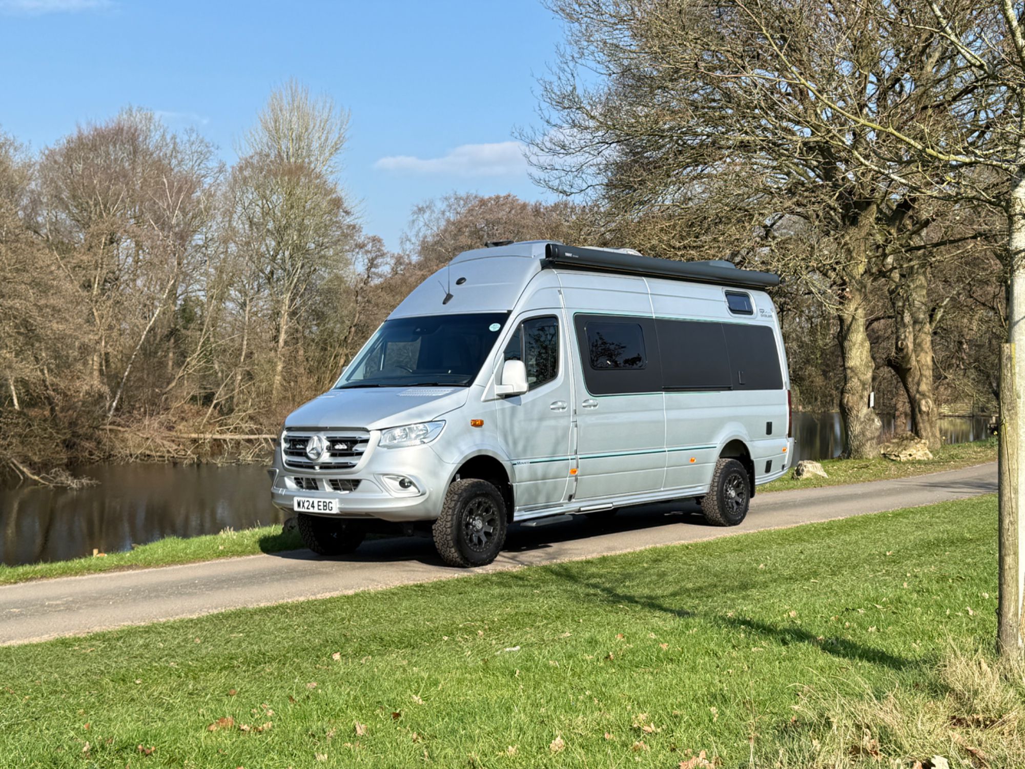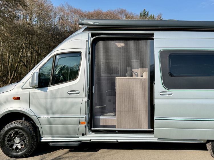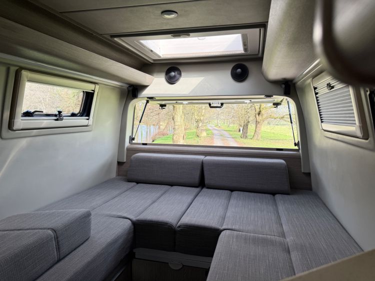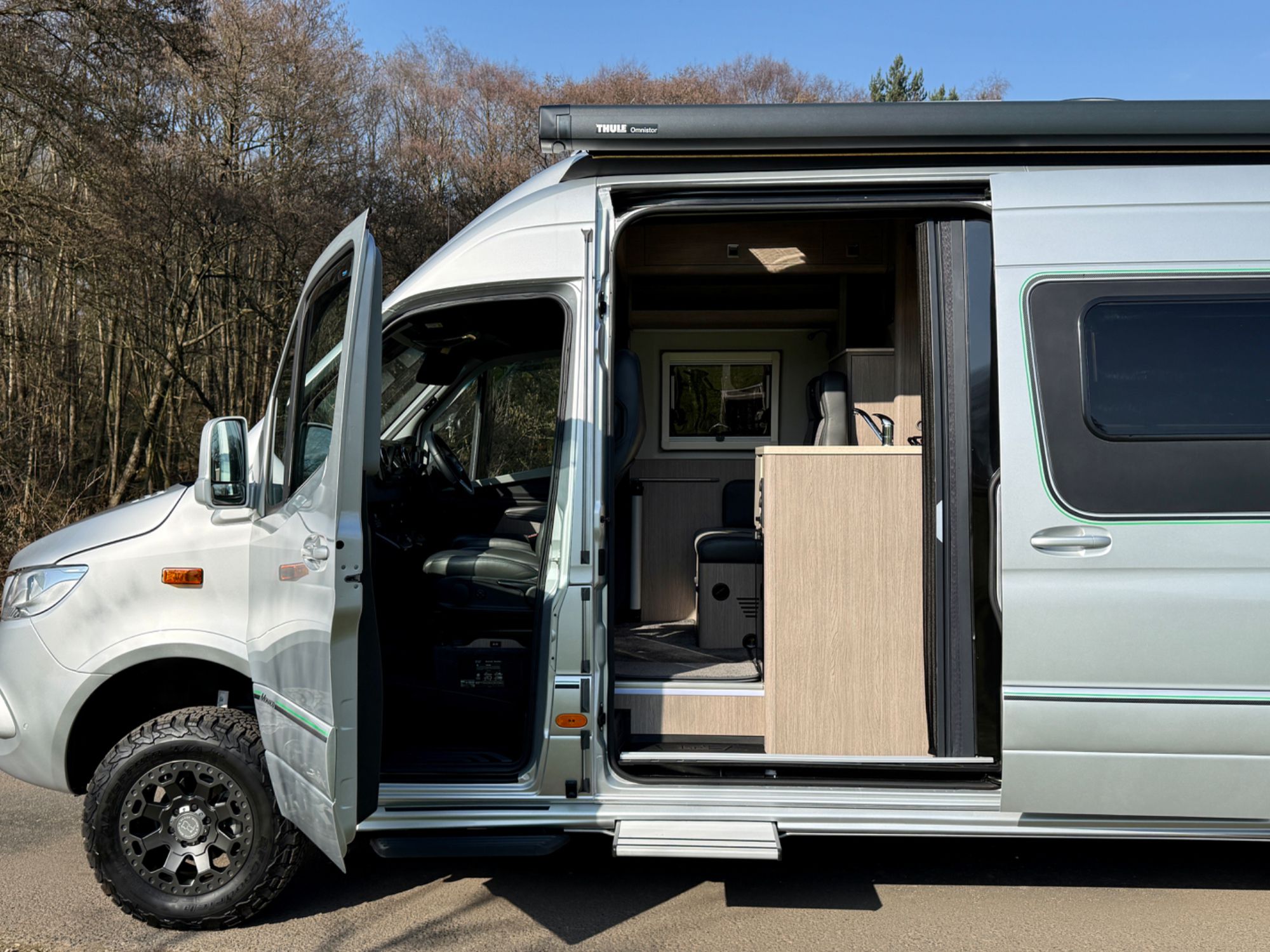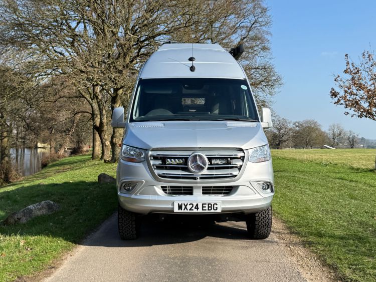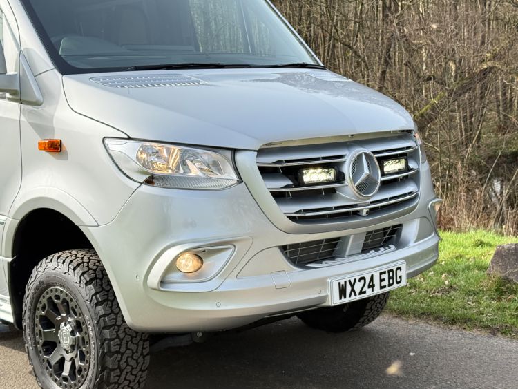 Lazer Lamps Triple-R 750 grille kit - £750, Climair front smoked wind deflectors, ABS wheel arch flare covers, Body Kit - side skirts, rear & front apron - £2234, Thule Panorama Omnistor Awning Tent - £2996, electric sliding door £846, twin rear up and over doors, fog lamps with cornering light function £246, air suspension, chrome plated radiator grille, trailer-coupling with 13-pin socket, Victron BlueSolar Mono-crystalline 115W solar panel.