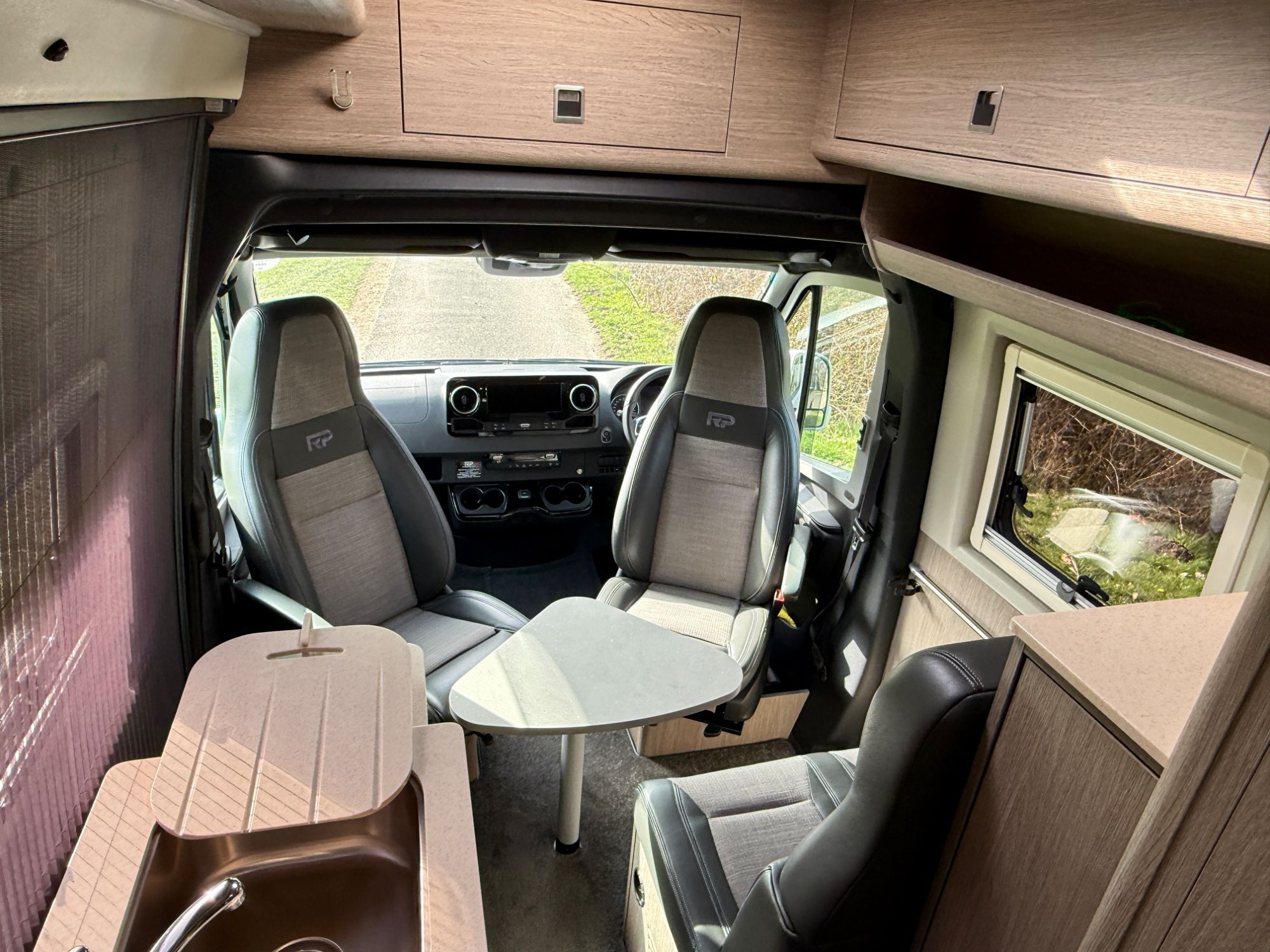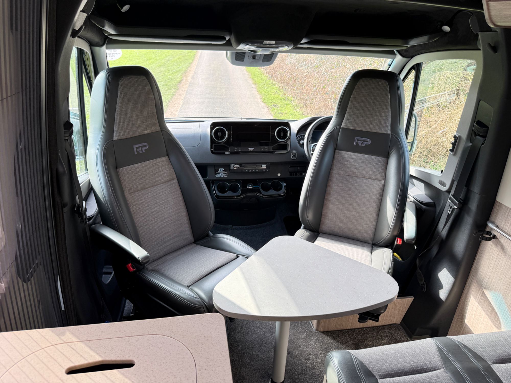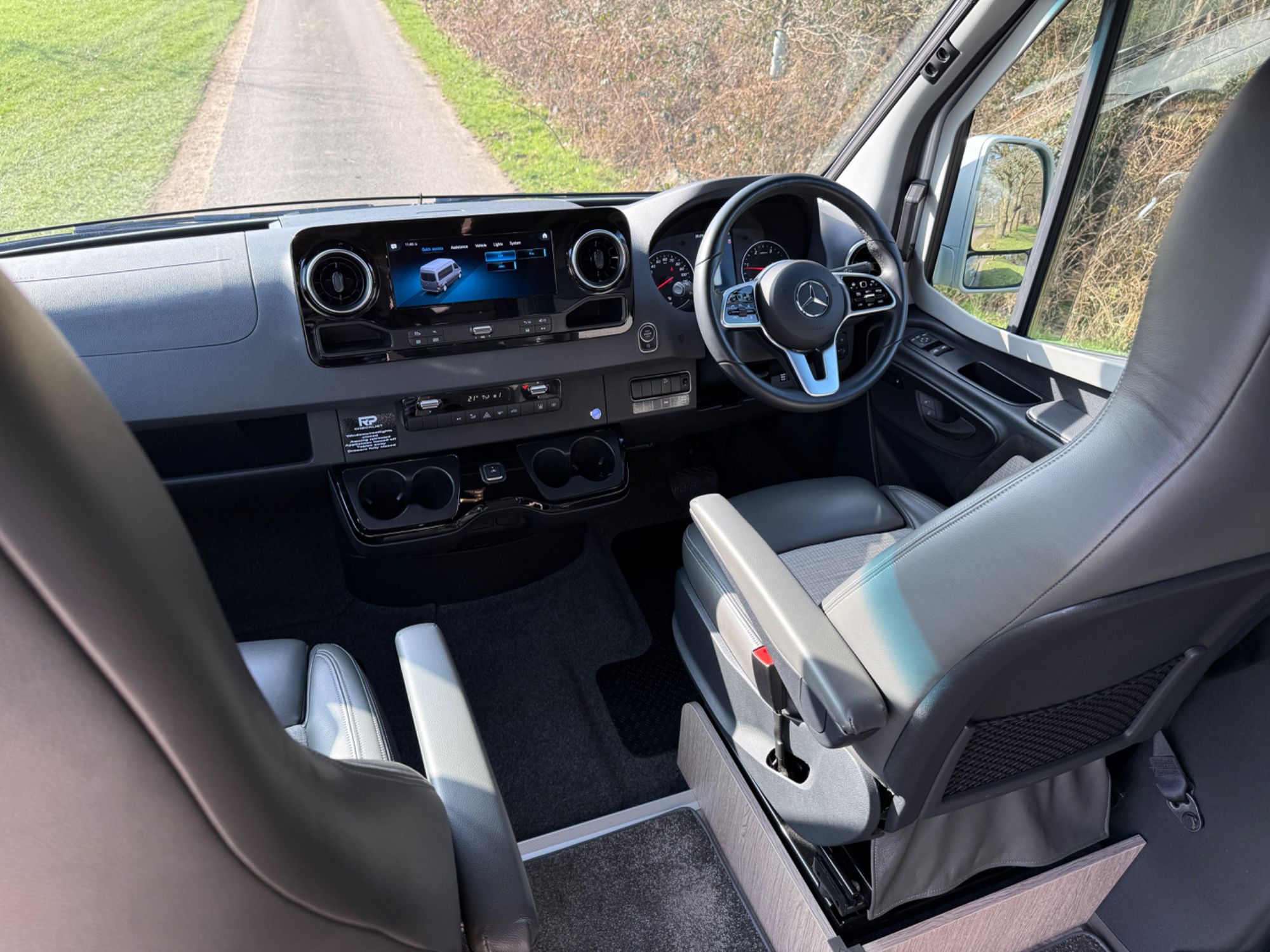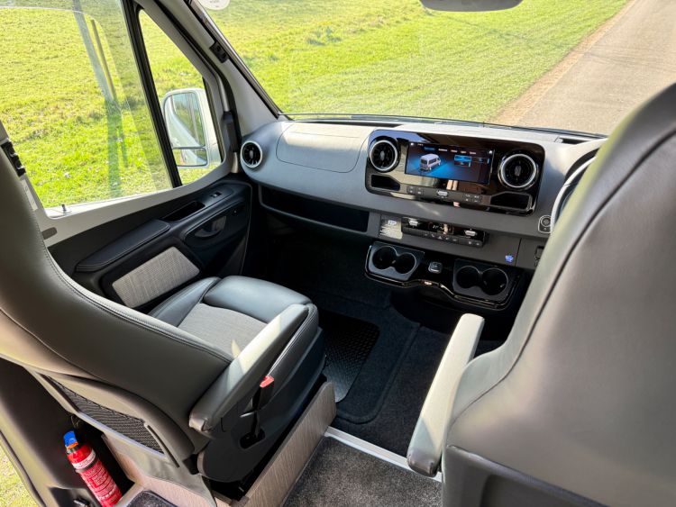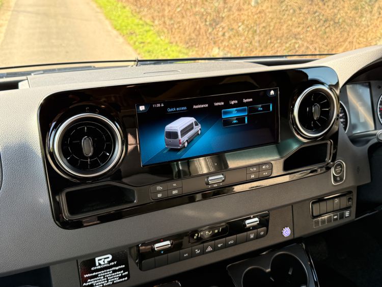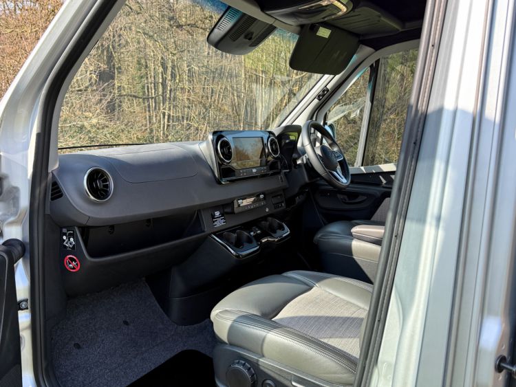 Cab Area - Comfort seats with armrests and lumbar support trimmed in fine grade leather/fabric and embossed with the RP logo, MBUX multimedia system with 10.25 inch touch screen including Apple CarPlay/Android Auto, Navigation, Wifi hotspot - £2238, Parking package with 360 Deg camera £1524, Air Con TEMPMATIC £1236, diesel powwered auxiliary air heater £774, heated windscreen £408, seat swivel bases £732, electric parking brake £336, highbeam assist £330, leather multifunction steering wheel £192, keyless start, cruise control, Crosswind ASSIST, Blind Spot ASSIST, instrument cluster with colour display £175, heated seats £402, highbeam ASSIST £330, Electric parking brake £336, Remis Cab Blinds - £995,
