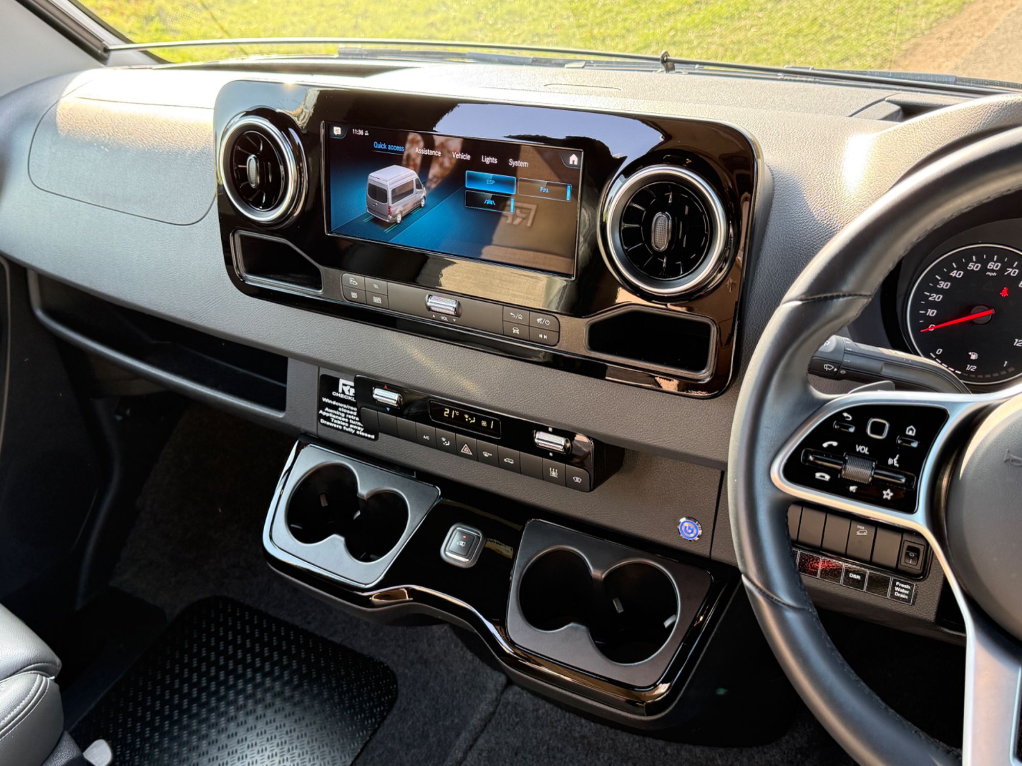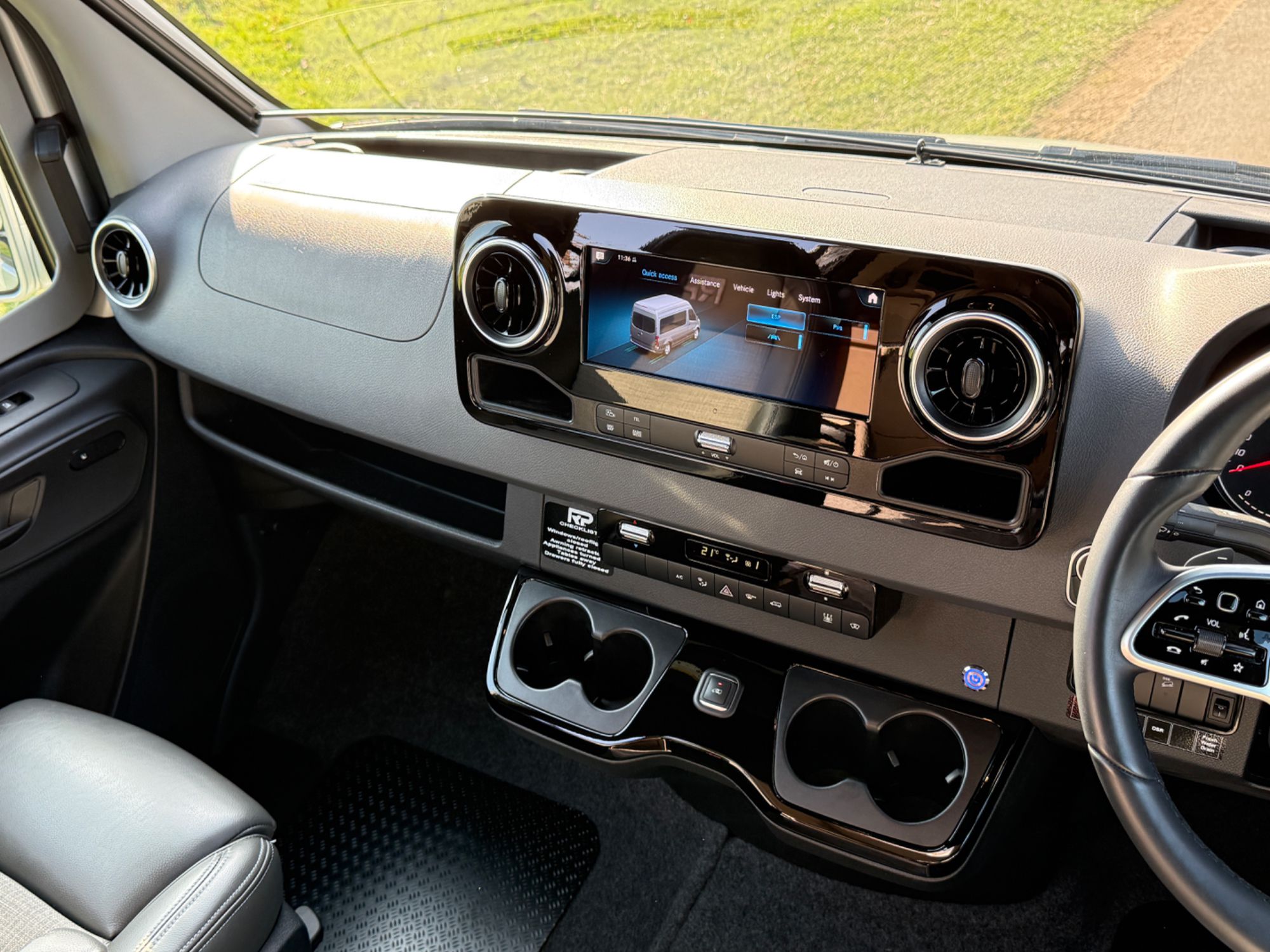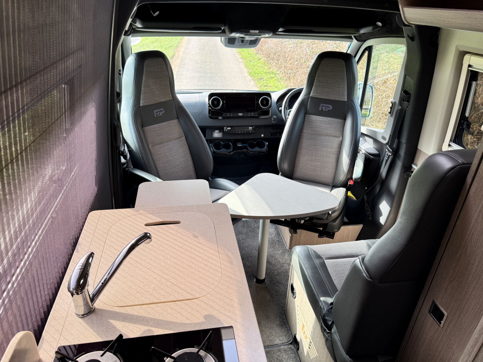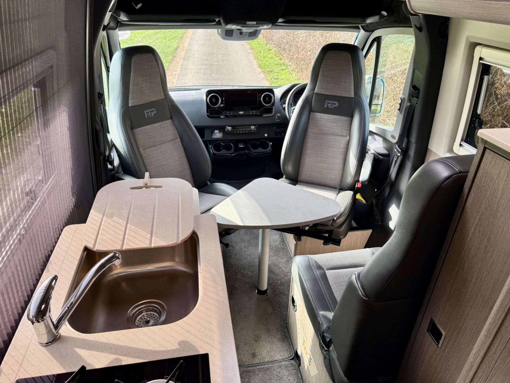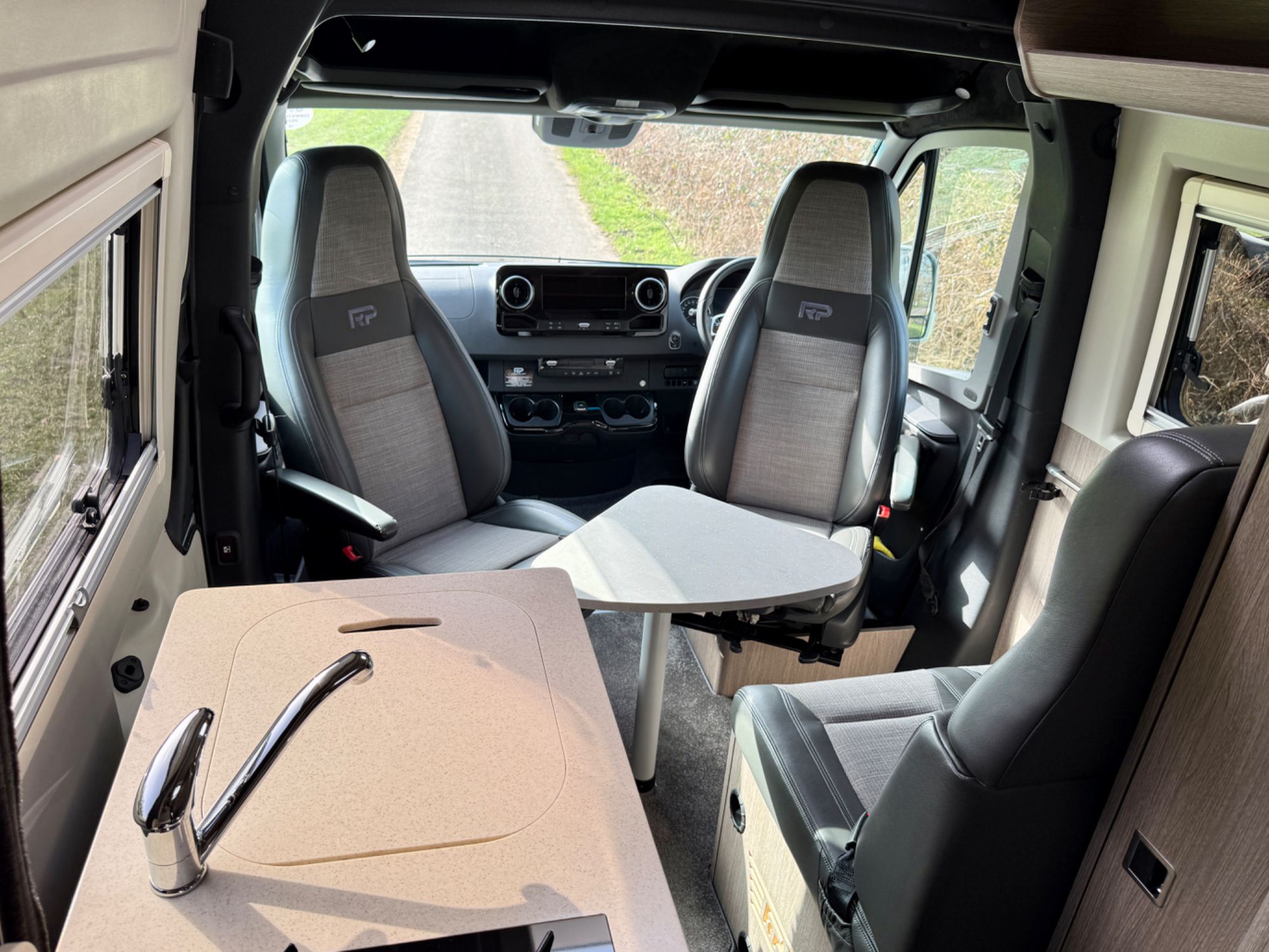 Cab Area - Comfort seats with armrests and lumbar support trimmed in fine grade leather/fabric and embossed with the RP logo, MBUX multimedia system with 10.25 inch touch screen including Apple CarPlay/Android Auto, Navigation, Wifi hotspot - £2238, Parking package with 360 Deg camera £1524, Air Con TEMPMATIC £1236, diesel powwered auxiliary air heater £774, heated windscreen £408, seat swivel bases £732, electric parking brake £336, highbeam assist £330, leather multifunction steering wheel £192, keyless start, cruise control, Crosswind ASSIST, Blind Spot ASSIST, instrument cluster with colour display £175, heated seats £402, highbeam ASSIST £330, Electric parking brake £336, Remis Cab Blinds - £995,