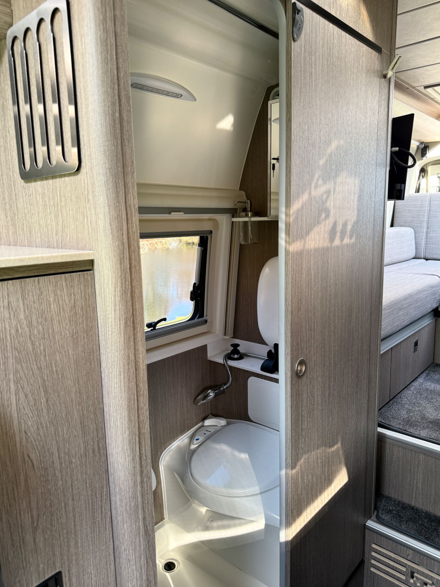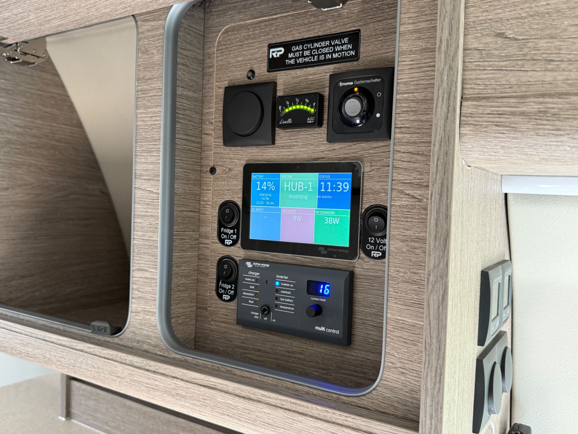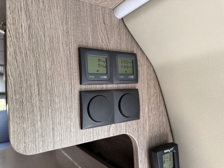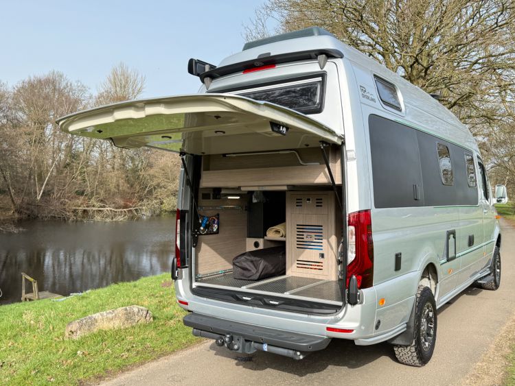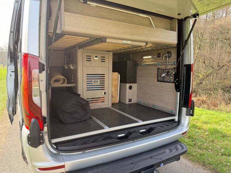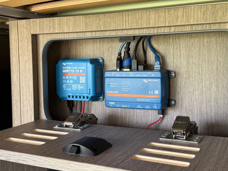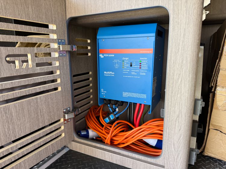 Under bed large garage houses the state of the art Victron electrical systems with Victron MultiPlus 3000 VA intelligent management inverter/charger, outside shower with shower tent £386