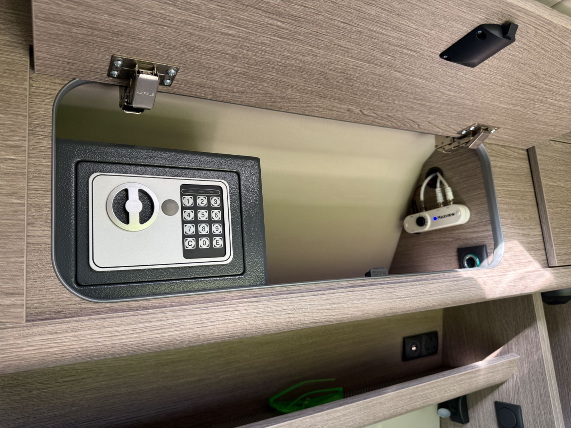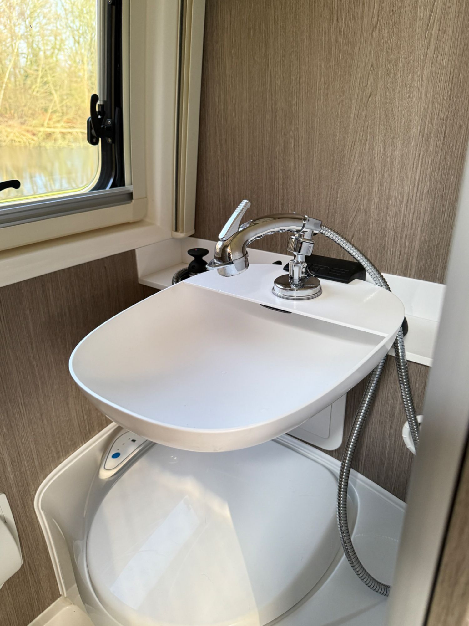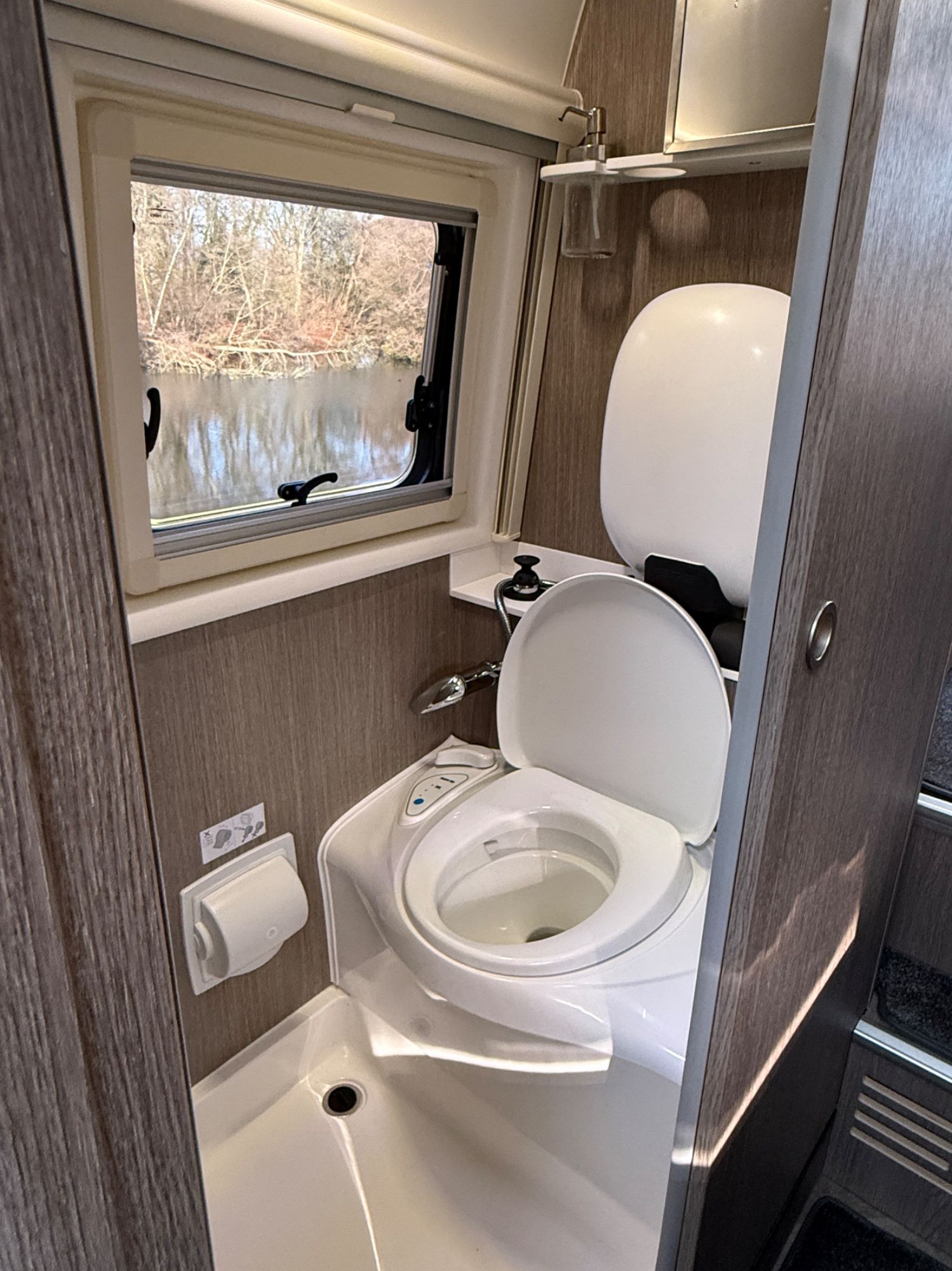 Under bed large garage houses the state of the art Victron electrical systems with Victron MultiPlus 3000 VA intelligent management inverter/charger, outside shower with shower tent £386