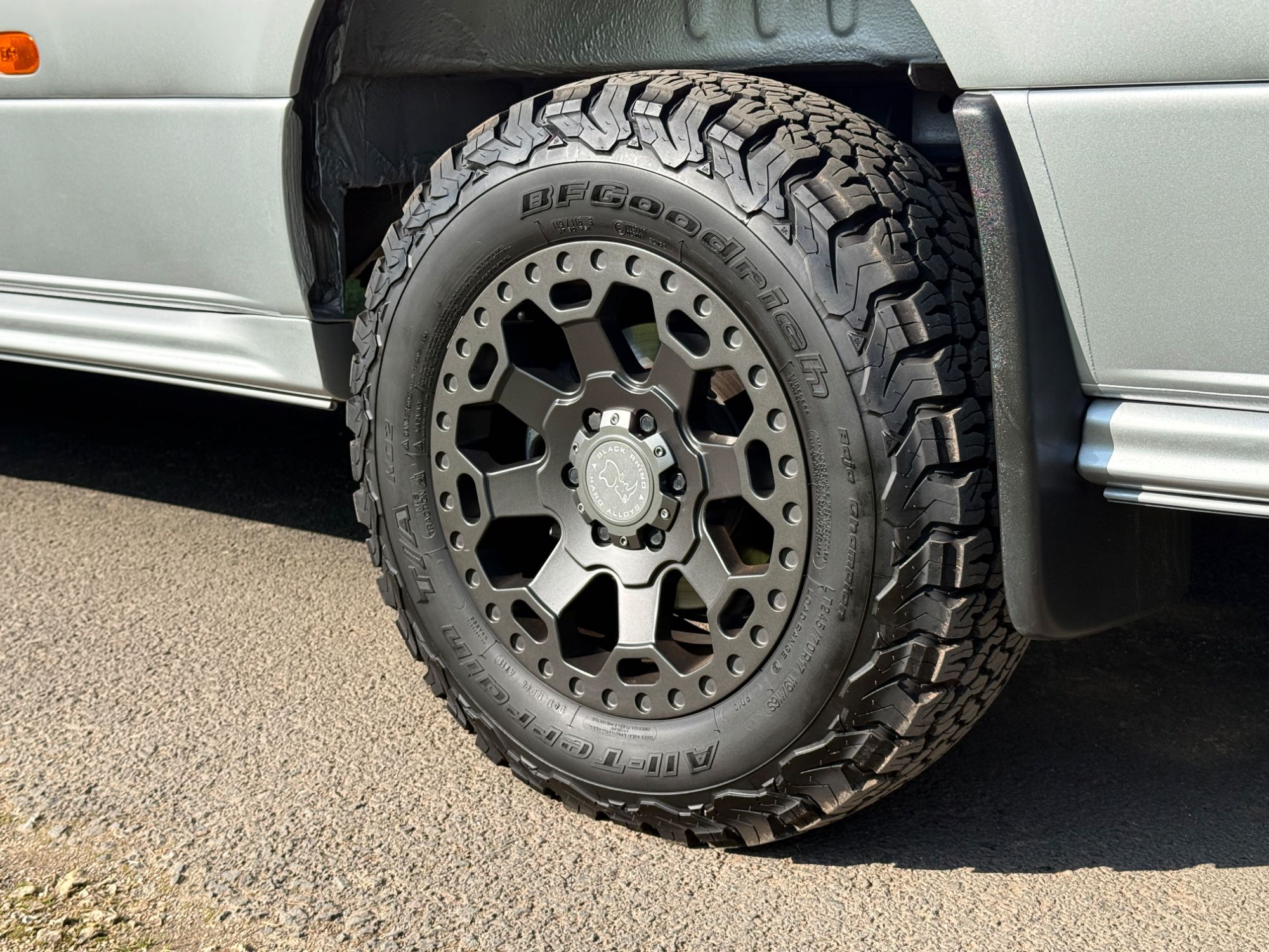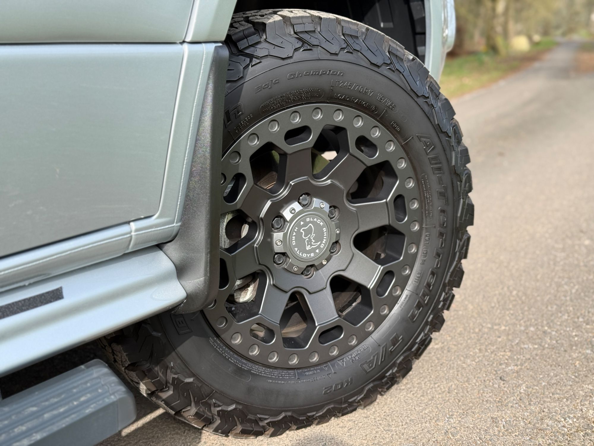 Fitted with unmarked Black Rhino Warlord Matt Gunmetal alloy wheels and all matching BF Goodrich All Terrain LT245/70 R17 119/116S Tyres.