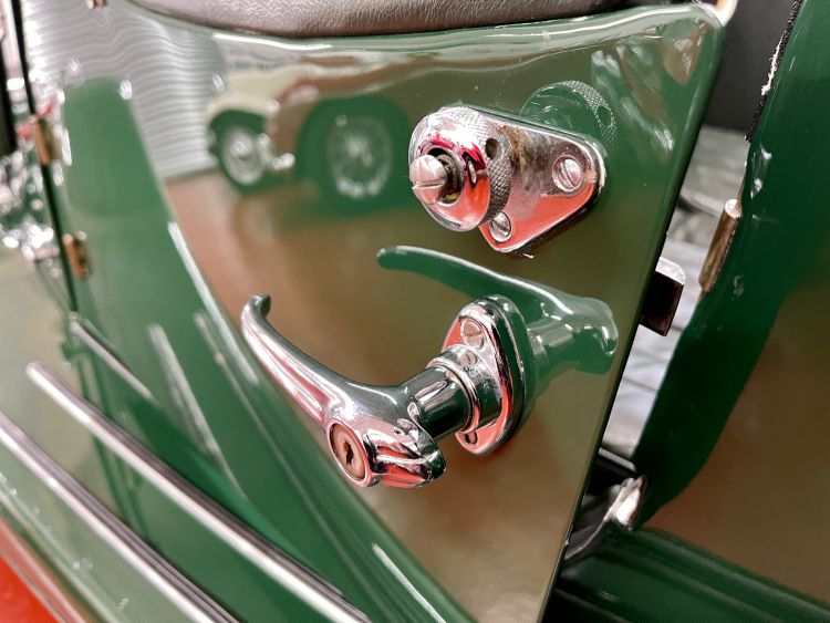 Finished in the original supplied Brunswick Green paintwork. The all steel complete body and chassis have been bare metal stripped, sanded/painted to perfection giving a uniformed deep gloss shine and completed in 2000 with a photographic record of the car before, during and after restoration. It's clear to see from the pictures that it's still stunning today which is testament to the outstanding quality of workmanship carried out 21 years ago. The door closures and panel fit excellent throughout.