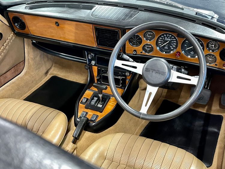 The original interior is in fine order throughout. The original basket weave vinyl seats show very minor signs of patina as to be expected being 45 years old. A new deep pile twist carpet was fitted throughout during the restoration but instructions were given to retain as much originality as possible with the rest of the interior. All original door cars, walnut veneer fascia dash, puddle lights, working clock, gauges and switch gear operate as they were intended. The original three-spoke alloy steering wheel with padded boss is in exceptional condition... Beautiful originality.