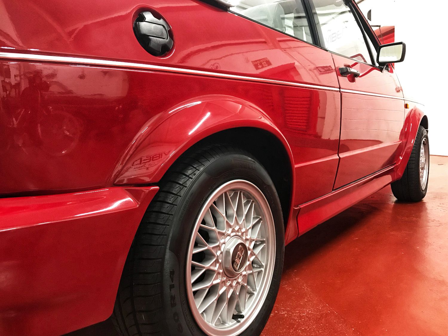 This Golf Clipper Convertible is fitted with newly refurbished flawless and rare original BBS cross spoke alloy wheels with lock in centre caps. They are all shod with brand new quality Pirelli Cinturato P1 tyres 185/60 R14tyres and the original space saver spare wheel is as new. The diagonally split braking system incorporating front discs and self-adjusting rear drums provide assured stopping power.