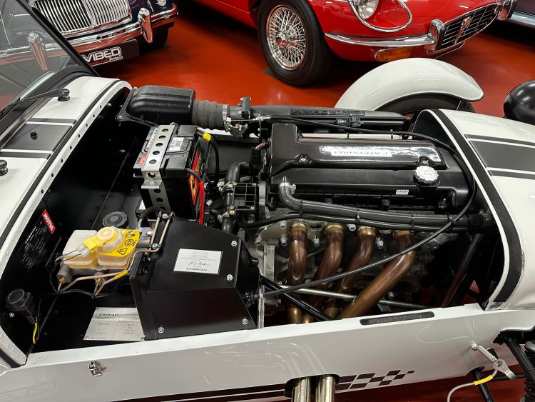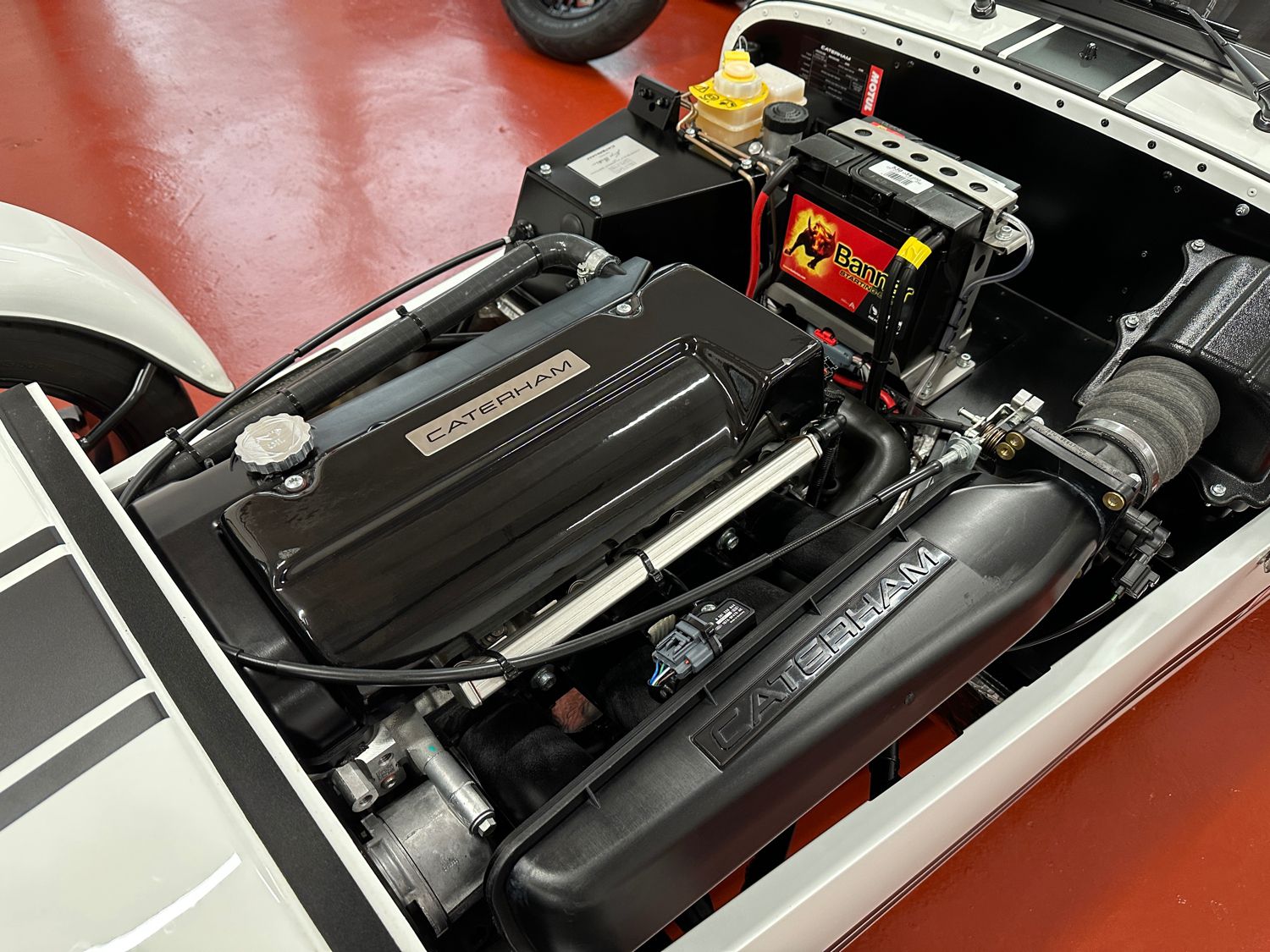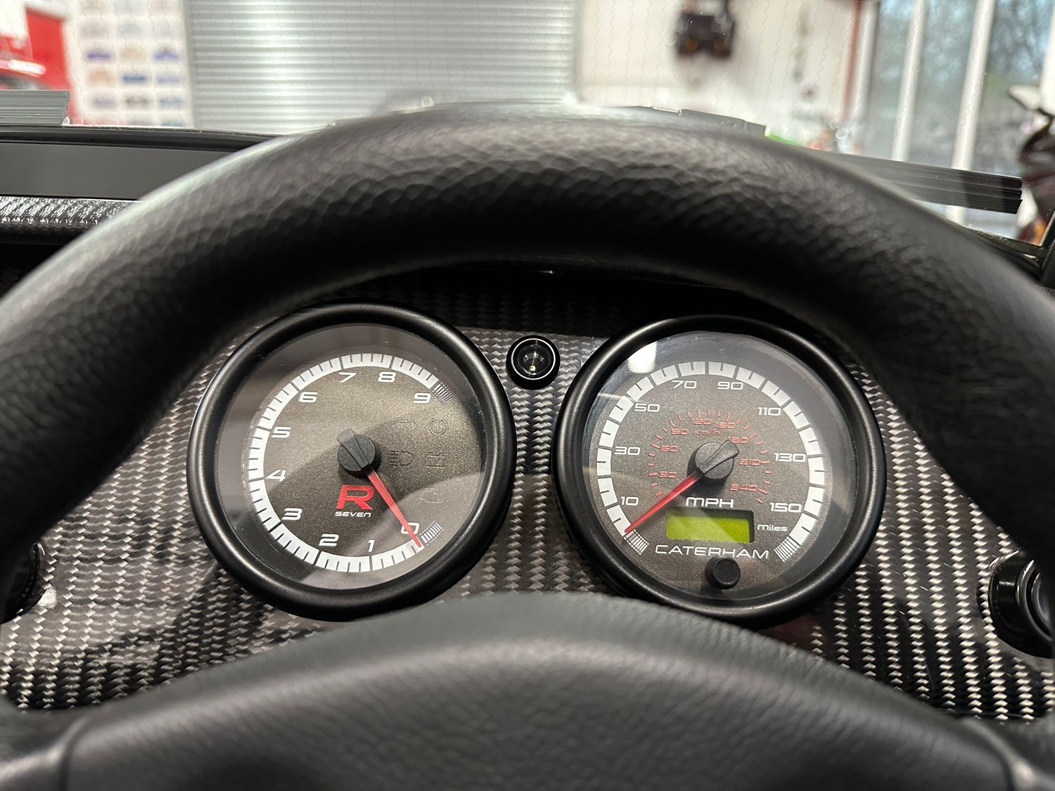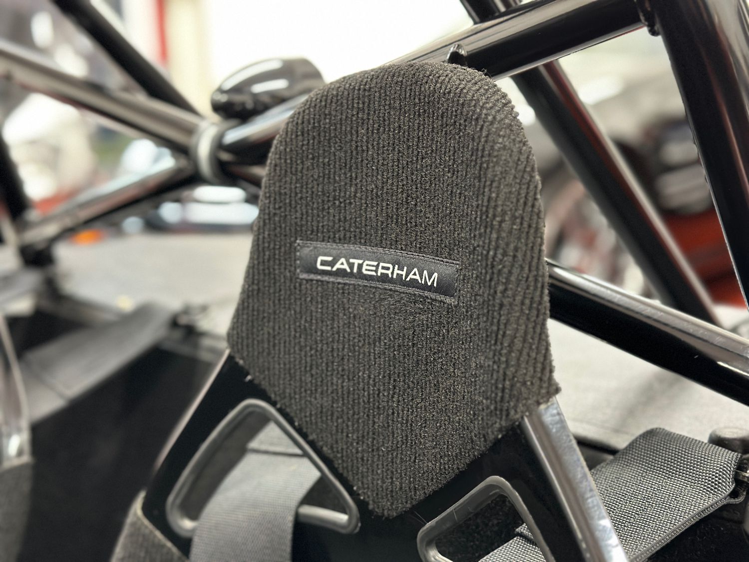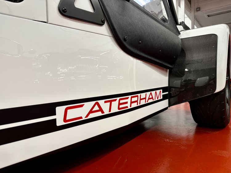 | R-Pack, Triple Satin Black Stripes, Lowered Floor, 15" Orcus Wheels, Full Carpet Set, Tillet Composite Seats, Momo Leather Steering Wheel, Heater, Clear Lens Pack, Carbon Wing Protectors, Carbon Sill Guards, Battery Master Cut Off, Full Weather Pack, Side Screen Arm Rests, Caterham Embossed Filler Cap, Carbon Leather Tunnel Top, Caterham Rubber Mats, Black Pack. | |