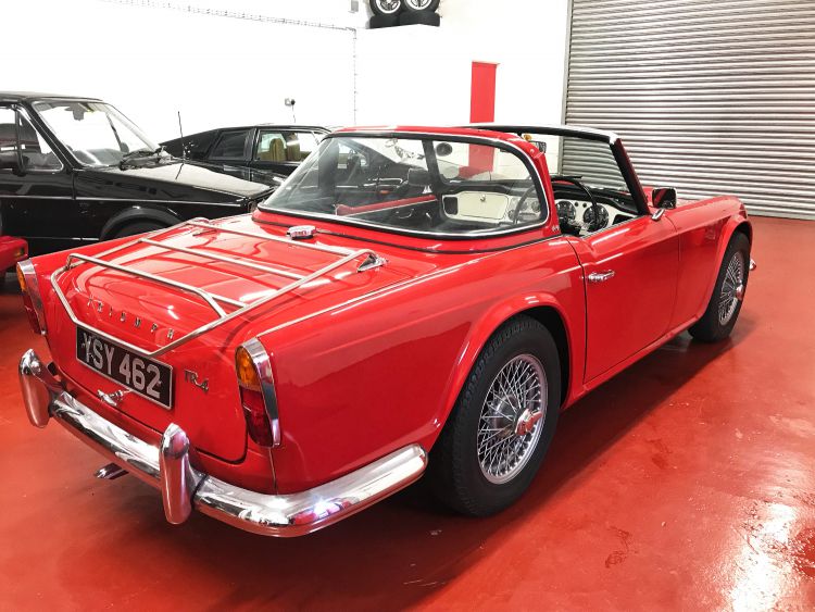 This delightful TR4 was bought in from the USA West Coast by a gentleman from Leicester in 1995. Sadly he passed away whilst the car was just about to be restored and converted to RHD. The car was then purchased by Mr Arthur Bedford of Crediton ,Devon who has confirmed he completely striped it back to the chassis and completed a full nut and bolt restoration. Some panels were replaced during the restoration using genuine BMC parts hence the fantastic fit and arrow straight lines of the car. Being a West Coast Dry State car it was in fantastic solid original order and treated to a full bare metal respray, converted to RHD using all the original clocks and gauges, and the interior fully restored using the original factory seats, door cards, window winders etc. Mr Bedford sold the car in 2014 and it has been with the current owner since this time. Only 2435 documented miles have been covered since its restoration way back in 1997 some 21 years ago. The history file contains 17 past MOT's dating back to the original of 13th May 1997 when the car was registered for the UK roads, many receipts and parts invoices, the original Triumph TR4 handbook and original sales brochure... lovely