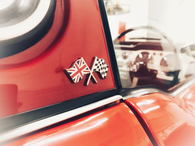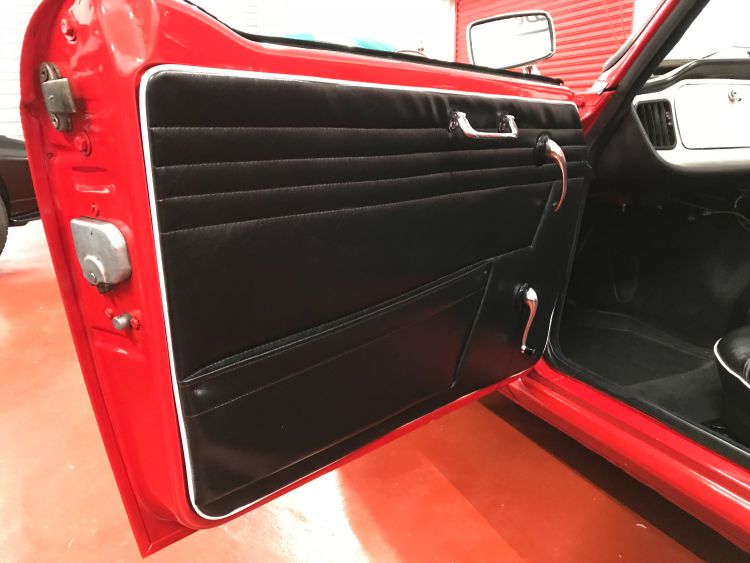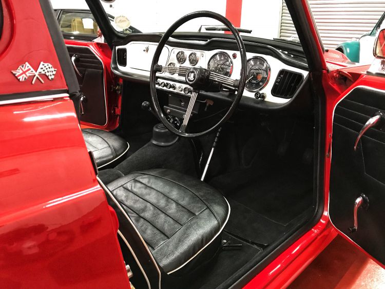 The elegant lines of the Giovanni Michelotti design are instantly recognisable this beautiful example is finished in its original colour of Signal Red (code 32) which boasts a beautiful uniform deep shine finish, completely blemish free which is testament to how well this car was prepared and painted 21 years ago. All trim sections, triplex glass, lights, badges and door handles are mainly original as are the chrome bumpers, just stunning. All steel genuine BMC panelled body, forward hinged bonnet and doors with excellent panel fit and arrow straight lines, laminated detachable windscreen, pristine removable Factory aluminium backlight with original Stanpart 'Surrey Top' complete with original delivery cardboard box!... Just lovely. The as new polished steel rear luggage rack is easily removable this would leave 2 holes not visible behind the number plate which are plugged with the supplied rubber grommets.