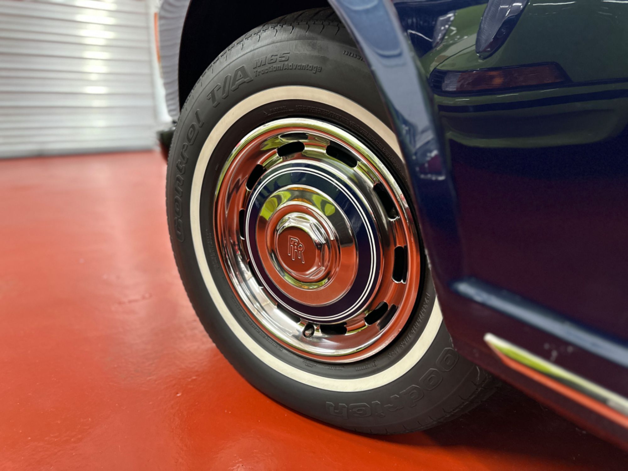 Wheels - Fitted with 15 inch pressed steel disc wheels with original Rolls-Royce wheel trims finished in Royal Blue with a thick/thin fine line in white. Dressed with factory optional whitewall all matching 235/75 R15 excellent tyres.