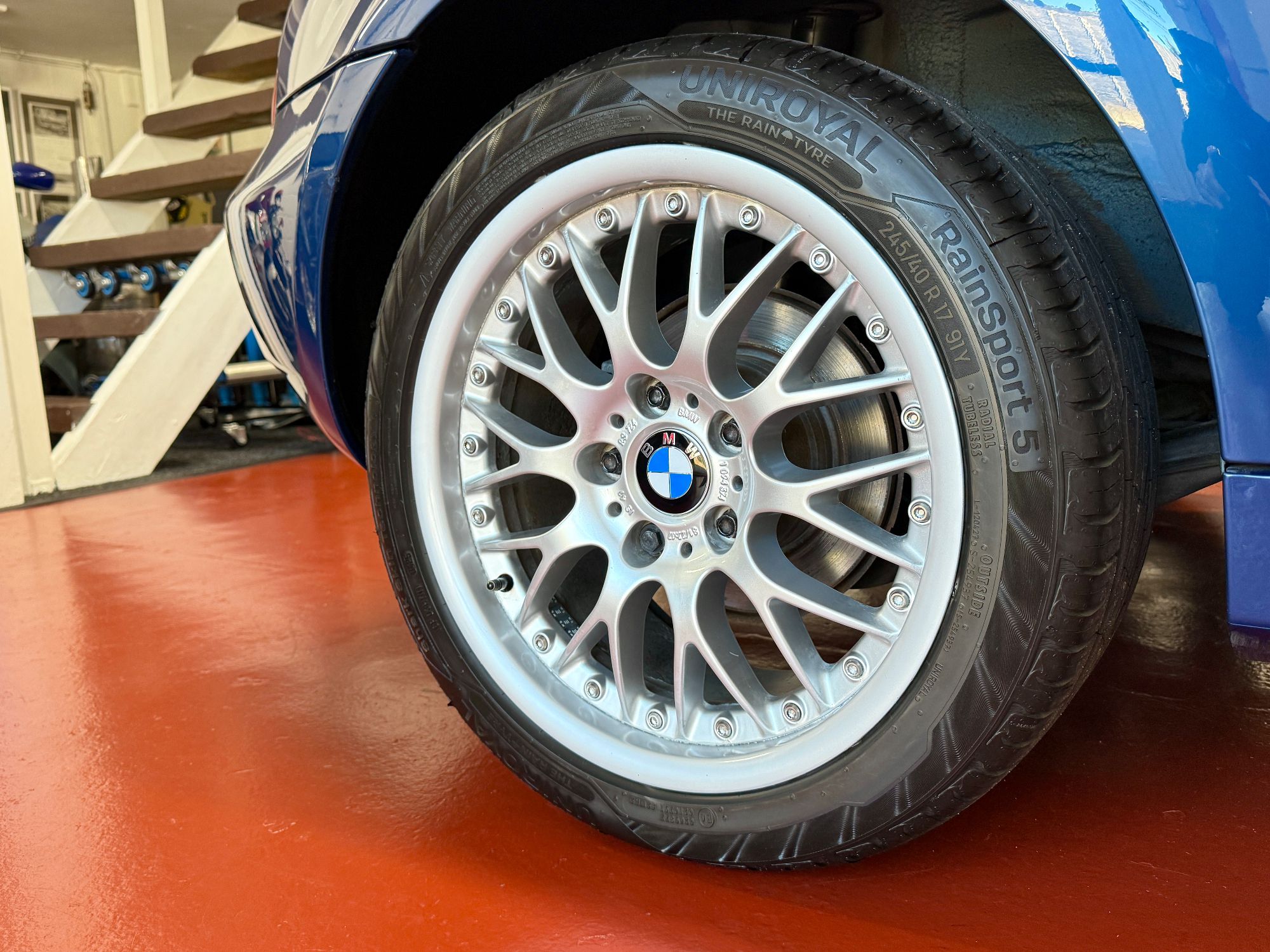 WHEELS - Filling the wide-body arches are a set of outstanding optional 17-inch BMW Style 42 split-rim alloys, the BBS RS740 type. Fitted all-round with premium brand tyres, 225/45 R17 Front and 245/40 R17 at the rear which are brand new Uniroyal Rainsport 5.