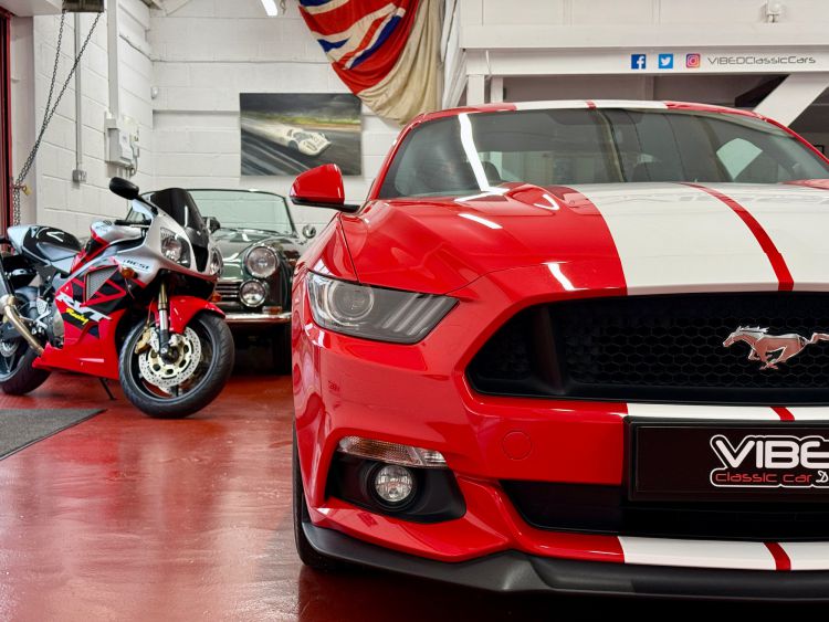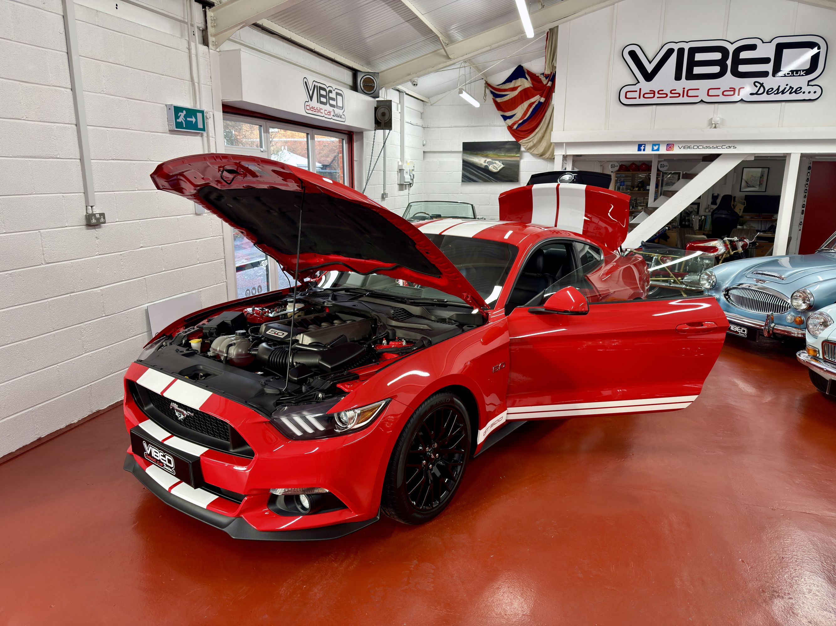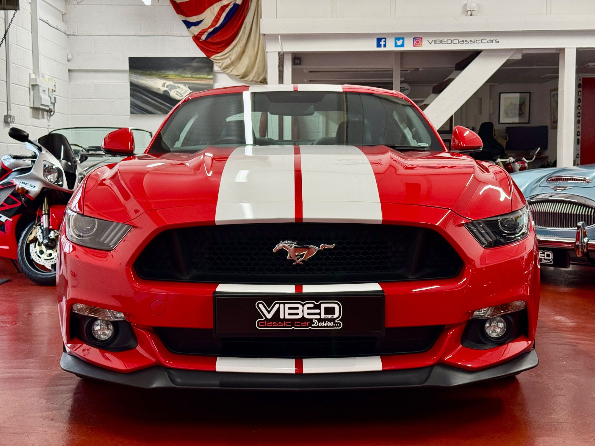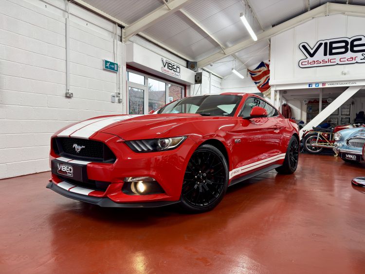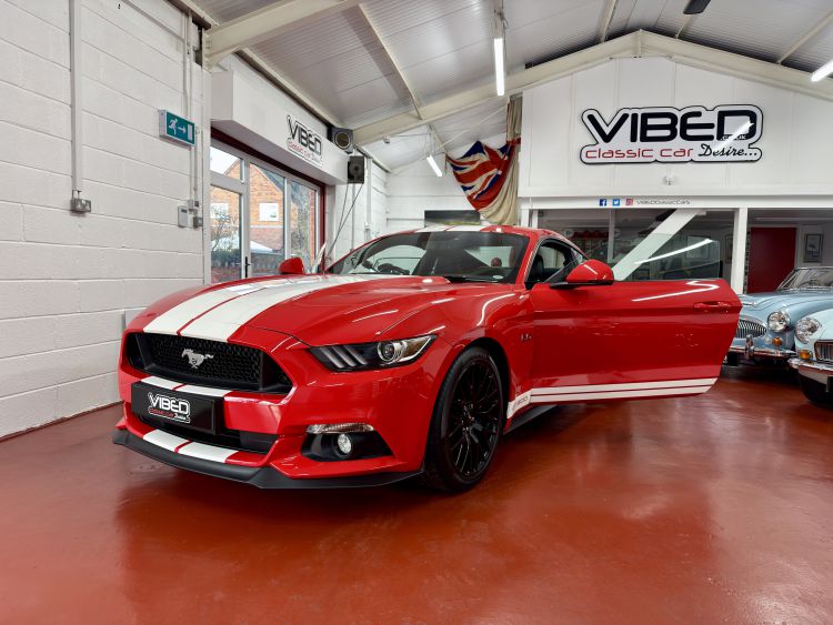 Here we have an opportunity to own a very desirable Ford Mustang 5.0 V8 GT Fastback in the best colour combination of Race Red with White Racing Decals...