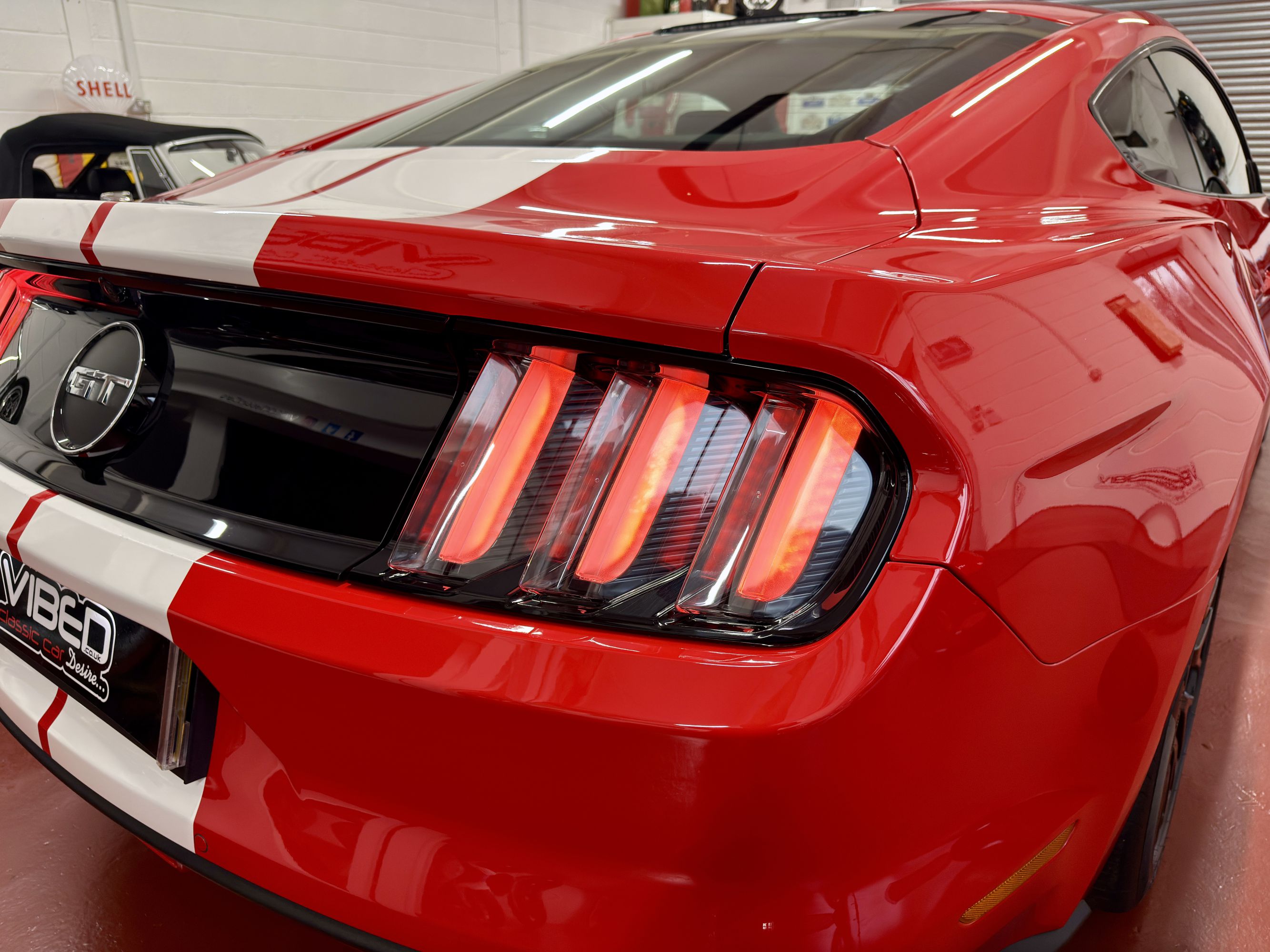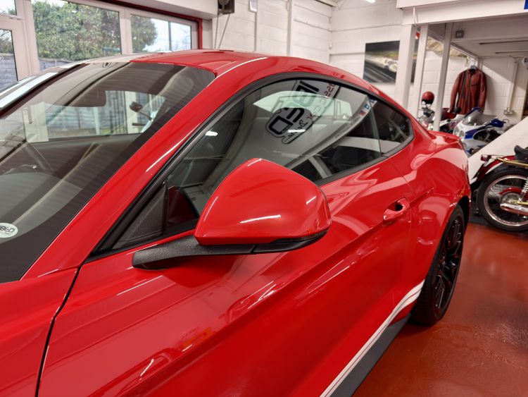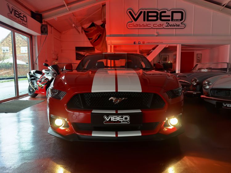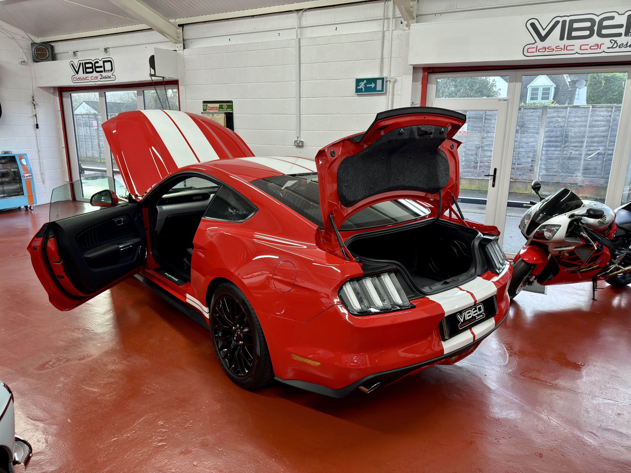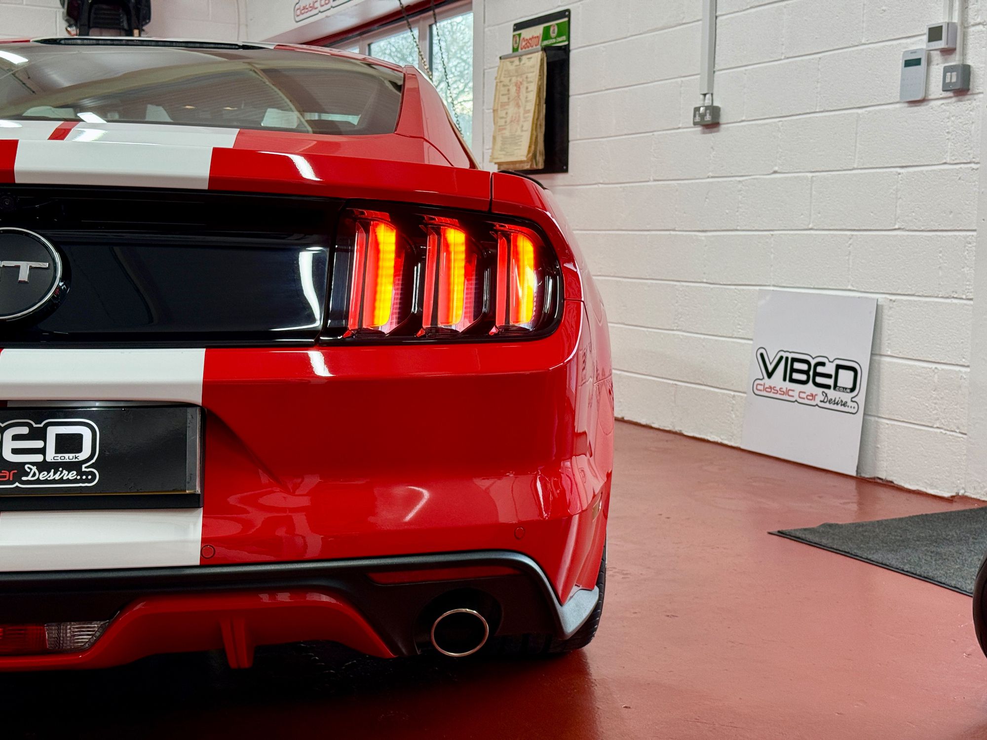 Here we have an opportunity to own a very desirable Ford Mustang 5.0 V8 GT Fastback in the best colour combination of Race Red with White Racing Decals...