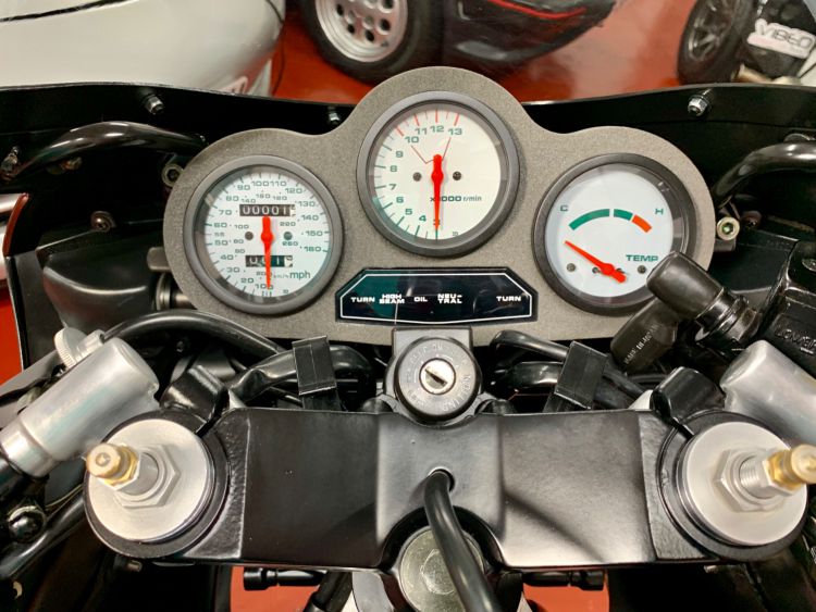 Instruments and Electrics - NOS very rare mph speedometer (cost £1000), tacho and temperature gauges restored, NOS clock surround, original switchgear restored, NOS handlebar grips and throttle, NOS levers, NOS ignition switch and lockset (1 key fits all locks with 2 correct genuine keys) NOS clutch, speedo, tacho and throttle cables, clutch perch restored etc