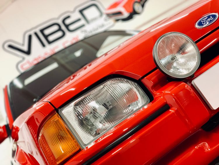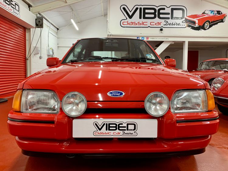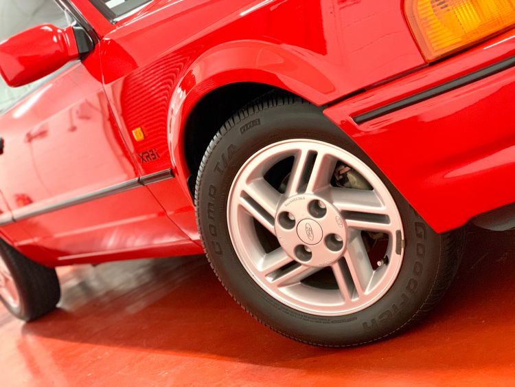 This stunning XR is finished in Ford Rosso Red, (Code R5), which has a mirror like uniformed finish and represents a car stored indoors for the last 32 years many of which in a carcoon. The all-original paint and factory panels are perfectly straight as you would expect with such low mileage, all trim sections and decals are correct and original. The rear rubber spoiler is unmarked and as new as are the factory fit Ford mudflaps. Woking Ford Main Dealer number plates remain fitted front and rear, as does the dealer sticker in the rear window, all as per the day it left the showroom. All lights are original Ford fitment and like new, the optional extra Carello driving lamps also come with the covers, which are very rare. This is one special XR...