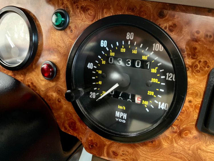 Just as it left the factory... Immaculate and unmarked luxurious Connolly Stone Beige leather, (Code SMJ) is extensively used throughout the passenger cabin of the MG RV8 with a ruched design, being a UK home market car the Elm Burr veneer facia panel, centre console and door capping's are flawless the interior is pure elegance. The original VDO black-on-white gauges all work perfectly, all interior chrome fittings are of a very high standard. The deep pile dark stone beige carpets with original MG carpet overmats are free from wear and are as new. The original leather gear knob is in excellent order... stunning cockpit