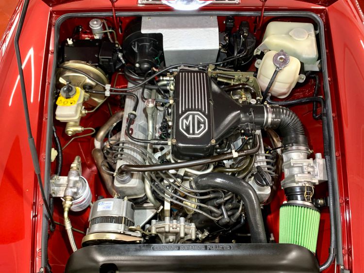The 3.9 litre V8 is extremely usable with 318 Nm of torque at 3200 rpm and 190bhp giving effortless midrange power. 0-60mph in 5.9 seconds and a top speed of 135mph this MG is no slouch. The engine bay is spotlessly clean and factory original with all markings plates and stickers present. The addictive V8 burble through the twin original exhaust is magical. The 5-speed manual gearbox is perfect changing with ease and precisely, the clutch is light and progressive... A joy to drive.