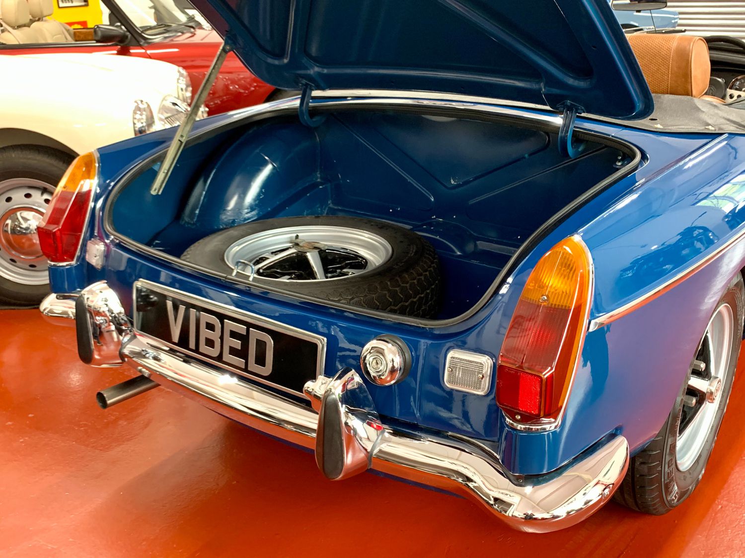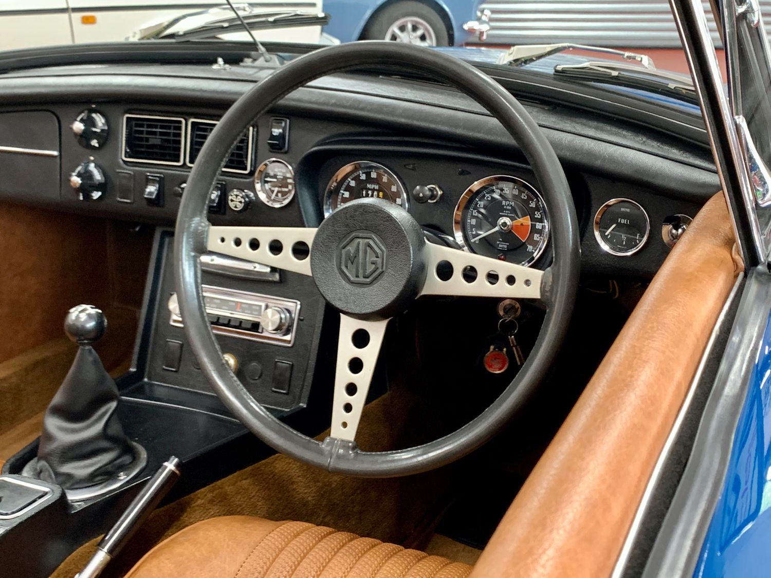 The original seats were re-upholstered in 2016 by a specialist restorer in the correct autumn leaf basket weave vinyl, all foam replaced with new. The door cards and full carpet set were also replaced in the same matching autumn leaf colour way. The original dashboard and facia are all in exceptional order and complimented with the original perfect MG leather rim steering wheel. All original clocks and gauges work perfectly with crystal clear glass, all switches, electrics and heater work as they were intended. Correct MG rubber floor mats protect the luxury carpet set.